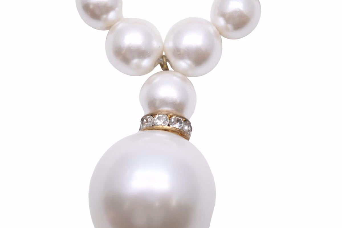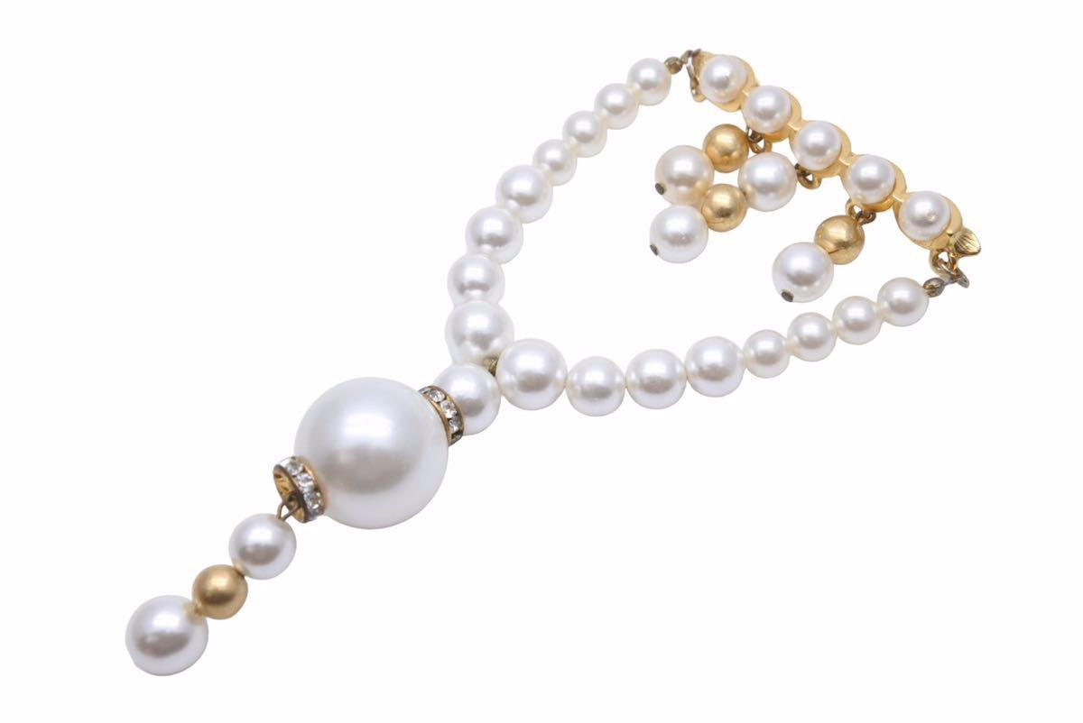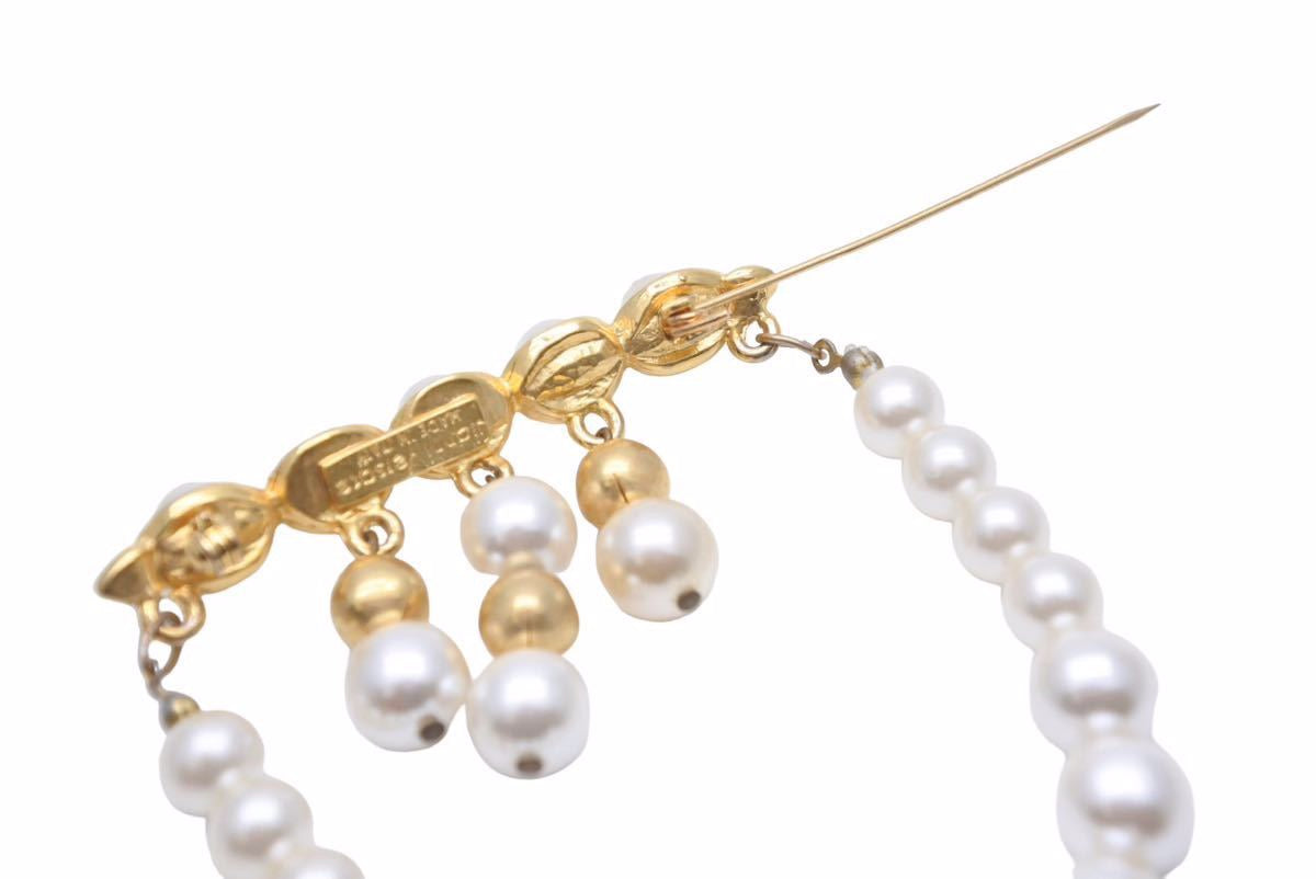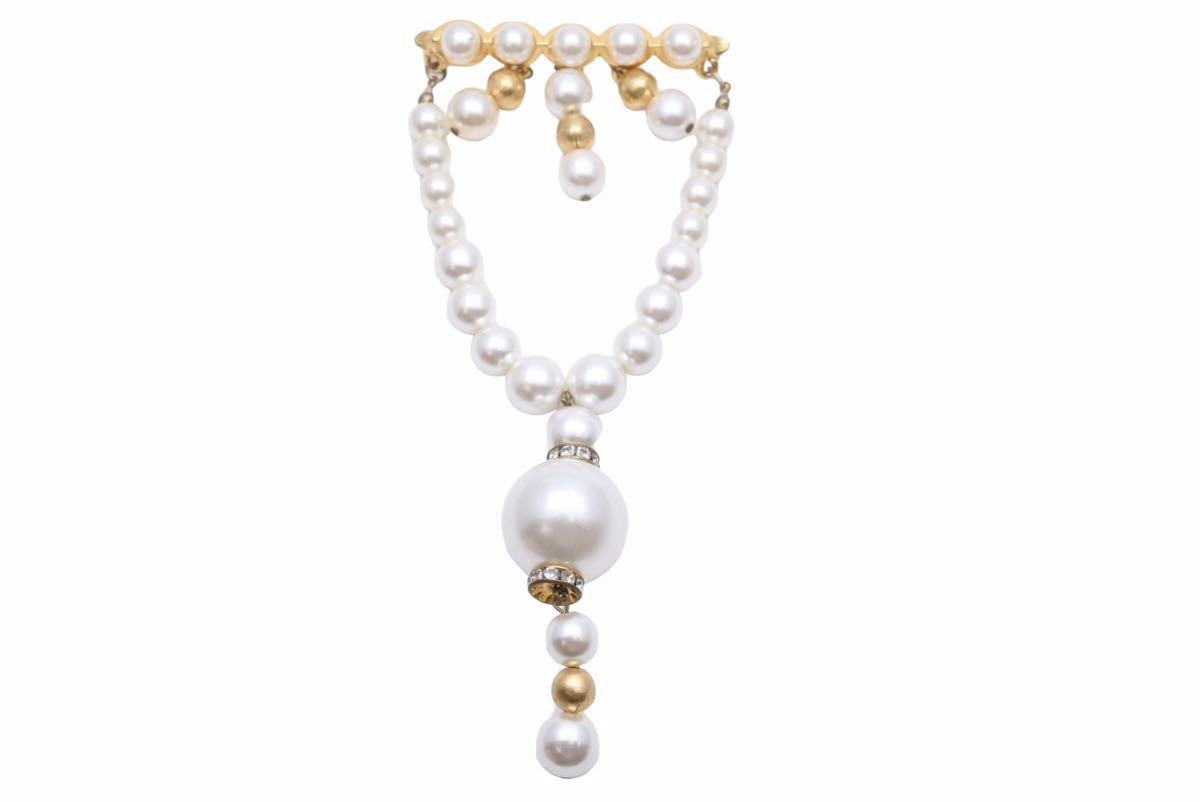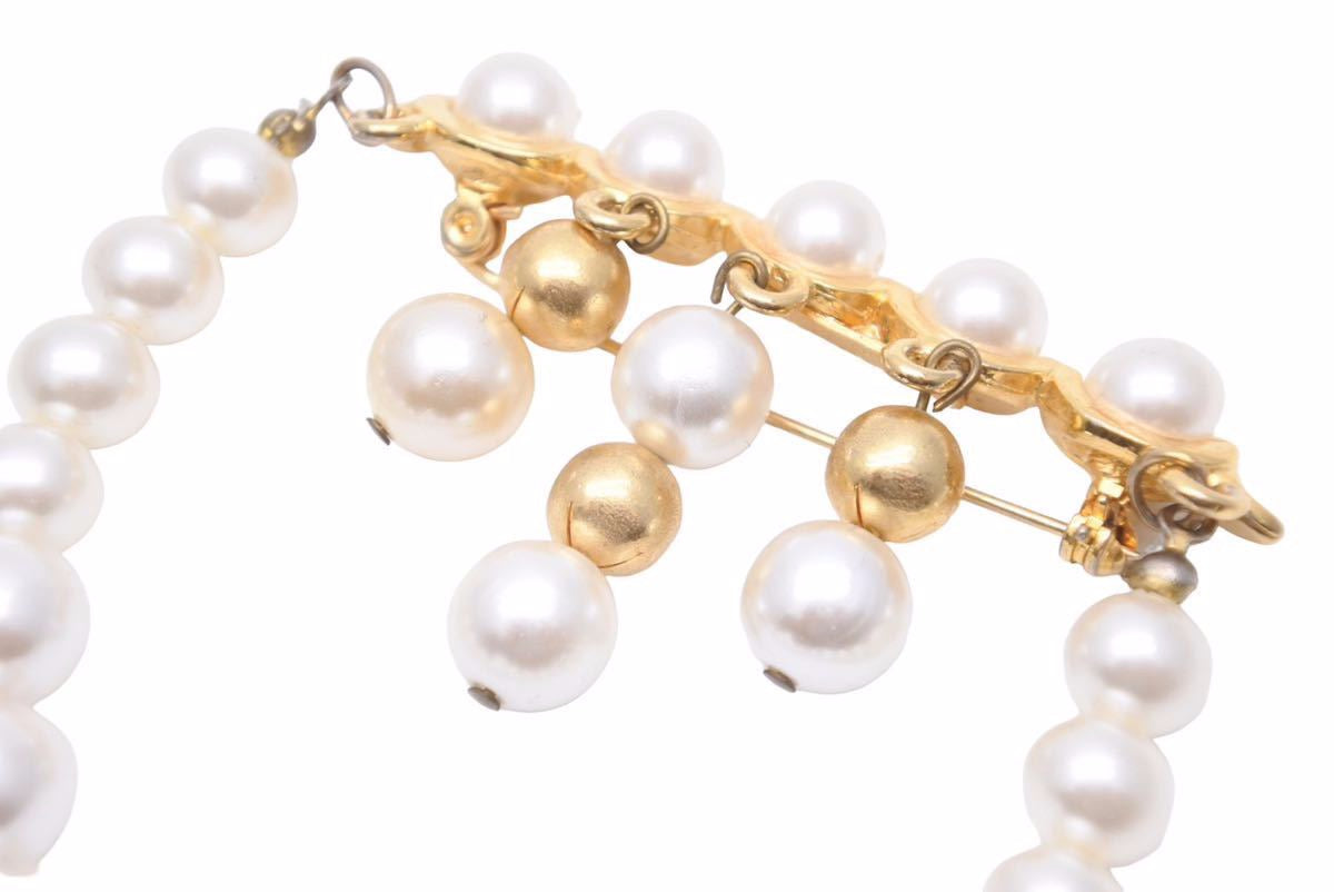 フェイクパールのデザインになっているブローチで存在感とインパクトのあるアイテムとなっています。