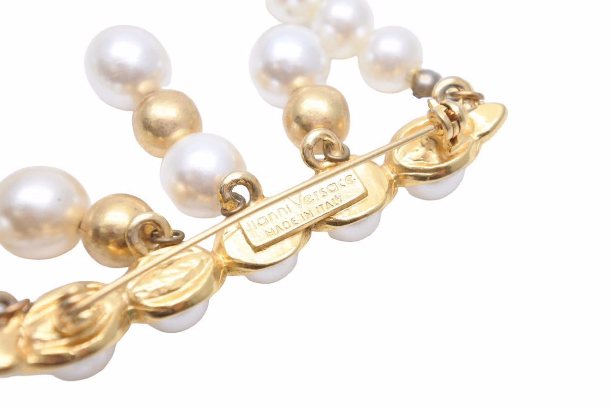 VERSACE ヴェルサーチ フェイクパール ブローチ ゴールド GP ラインストーン アクセサリー 小物 中古 25668