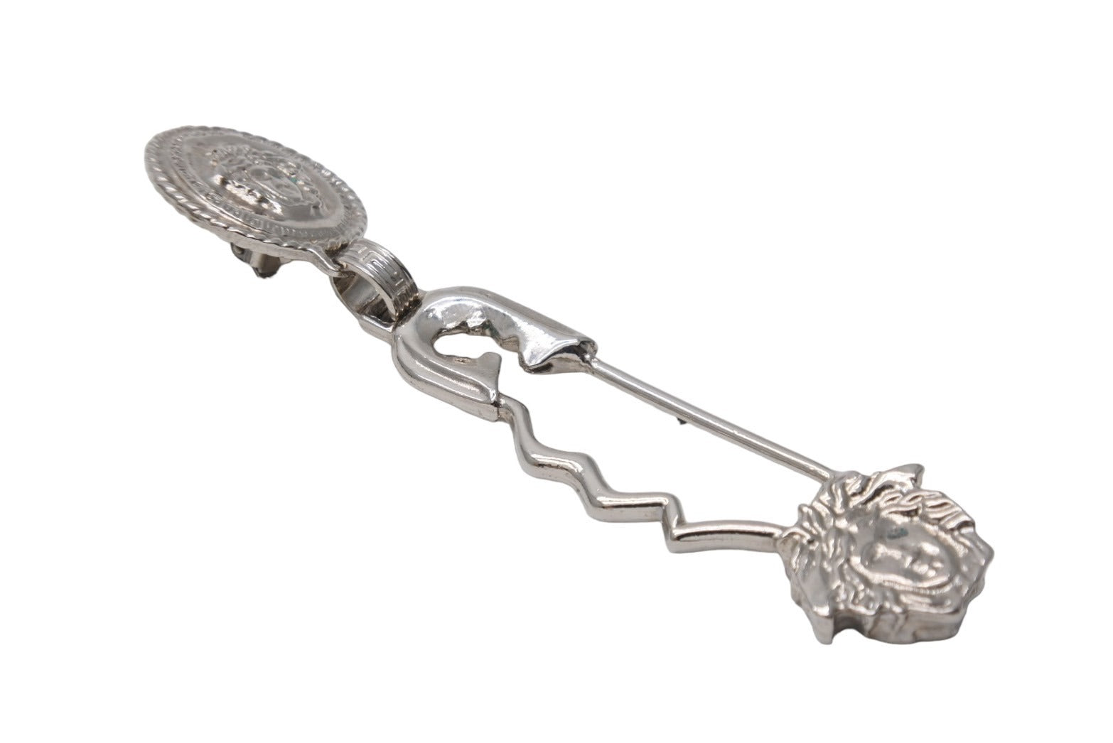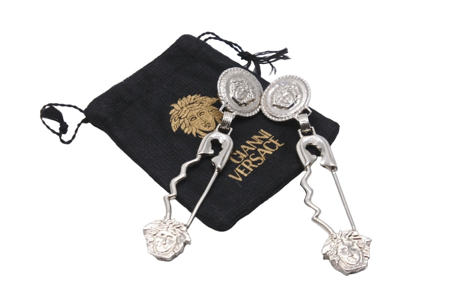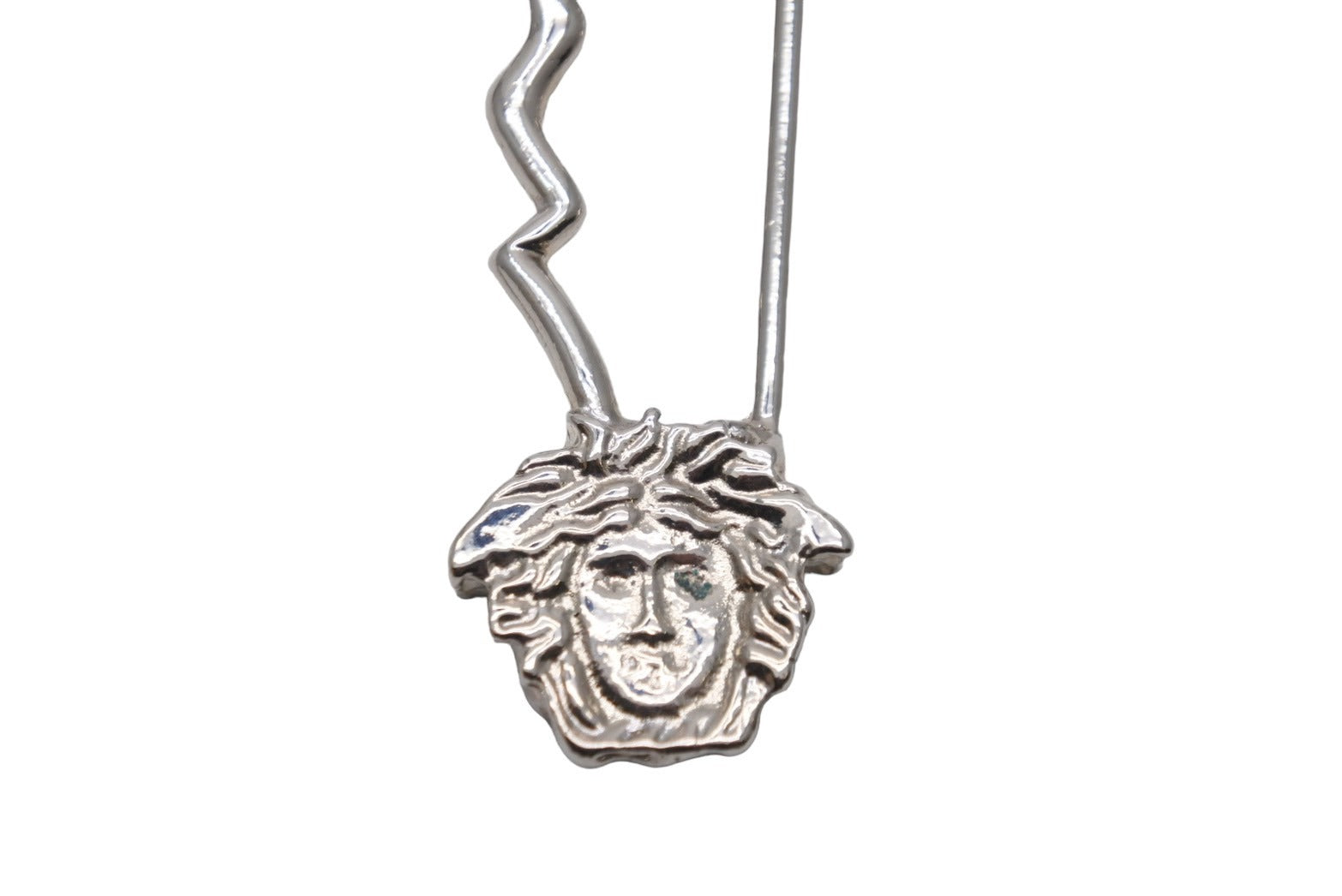 片方ピン部分と上部のメデューサの目部分錆あり。片方のピンのメデューサ頭頂部付近に錆あり。両方の上部裏側部分僅かな使用感あり。