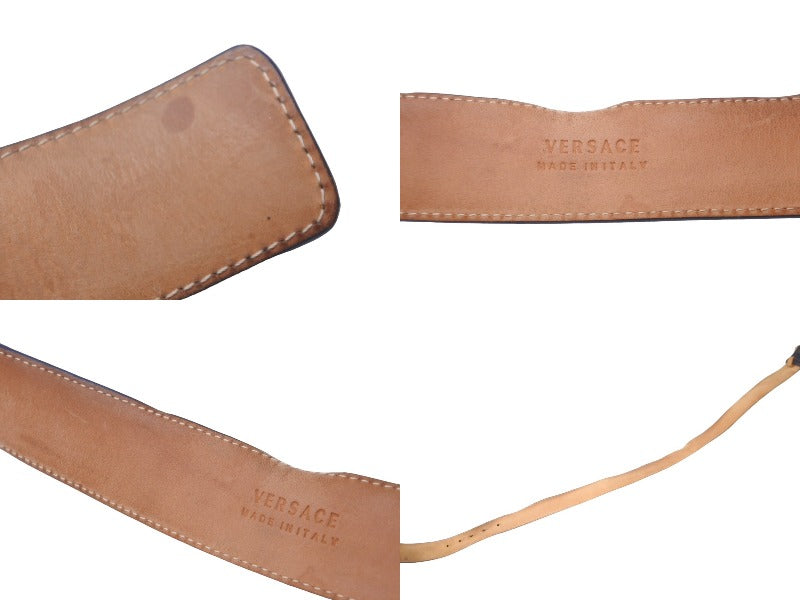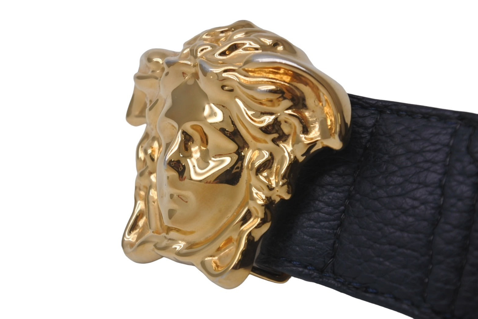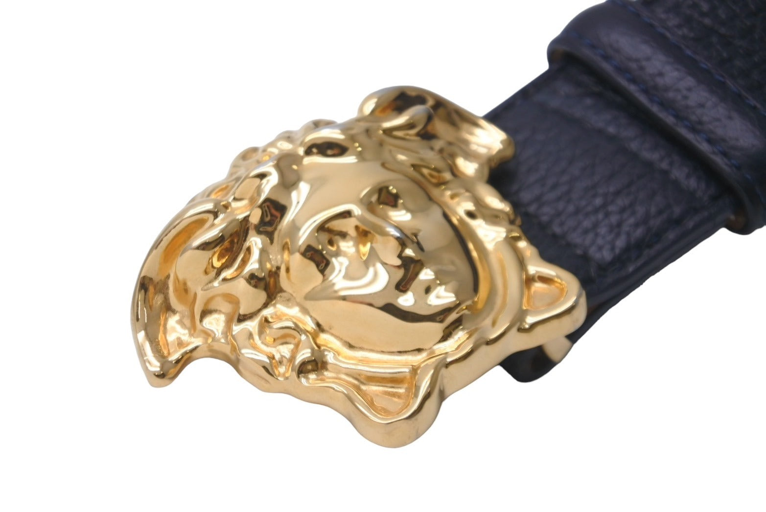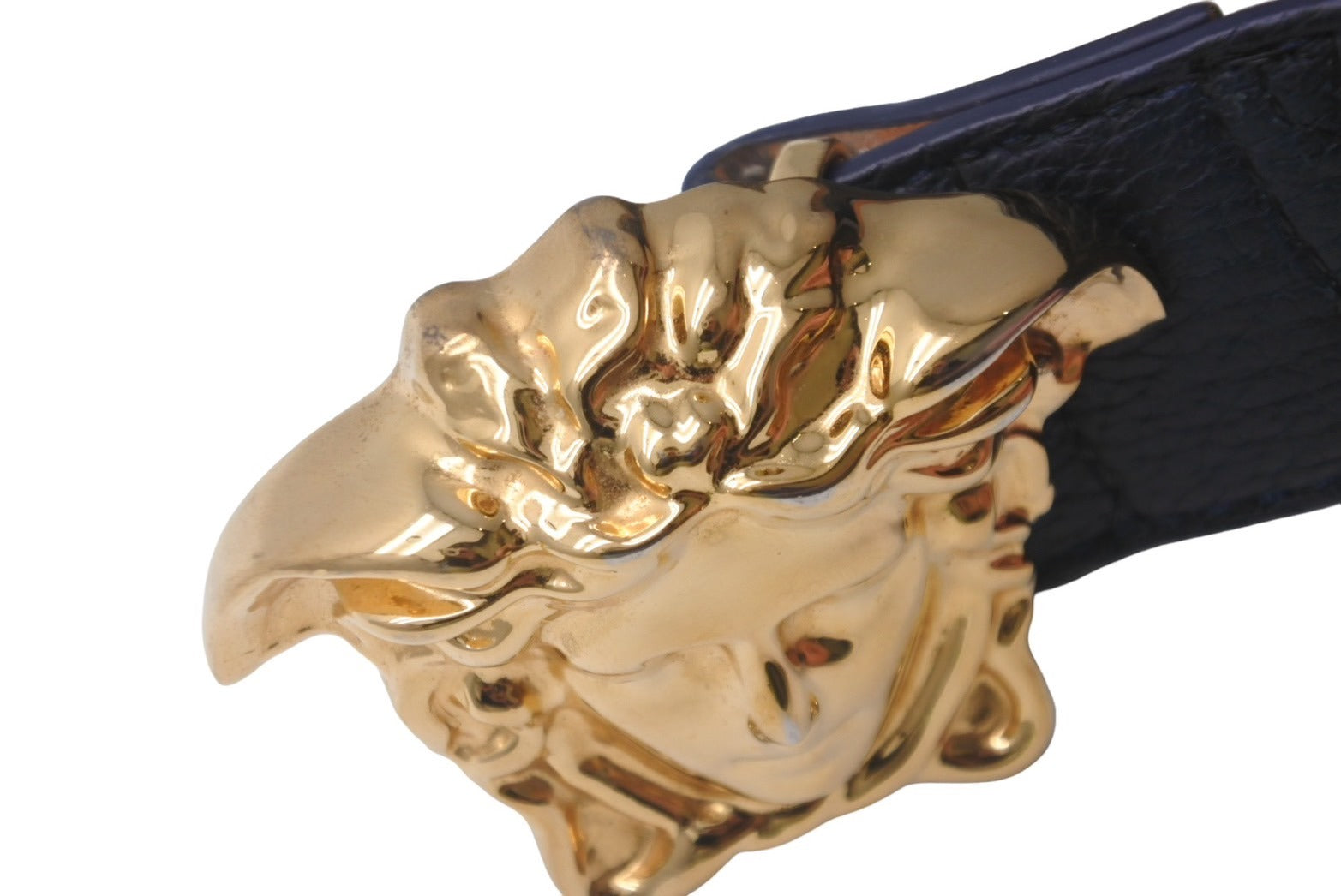 ヴェルサーチのアイコンであるメデューサがインパクトあるバックルになっているレザーベルトです。