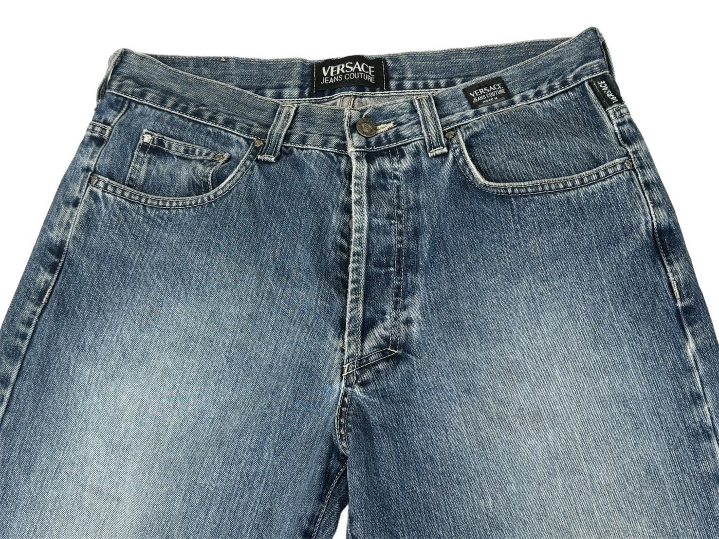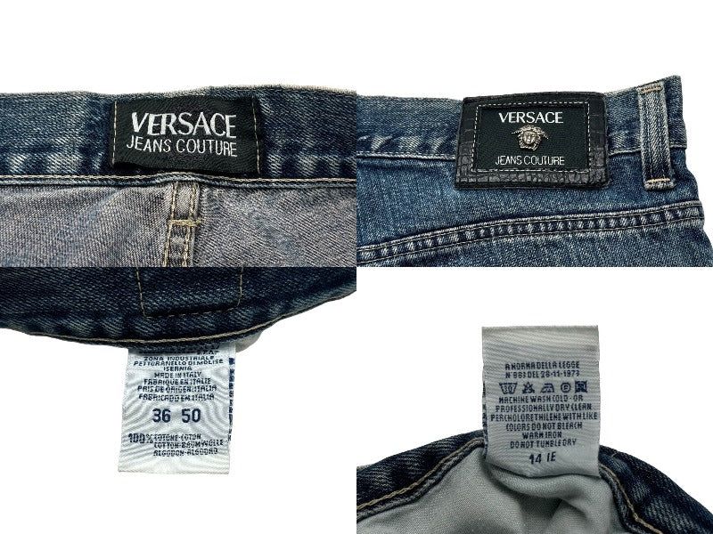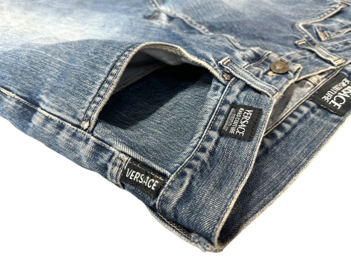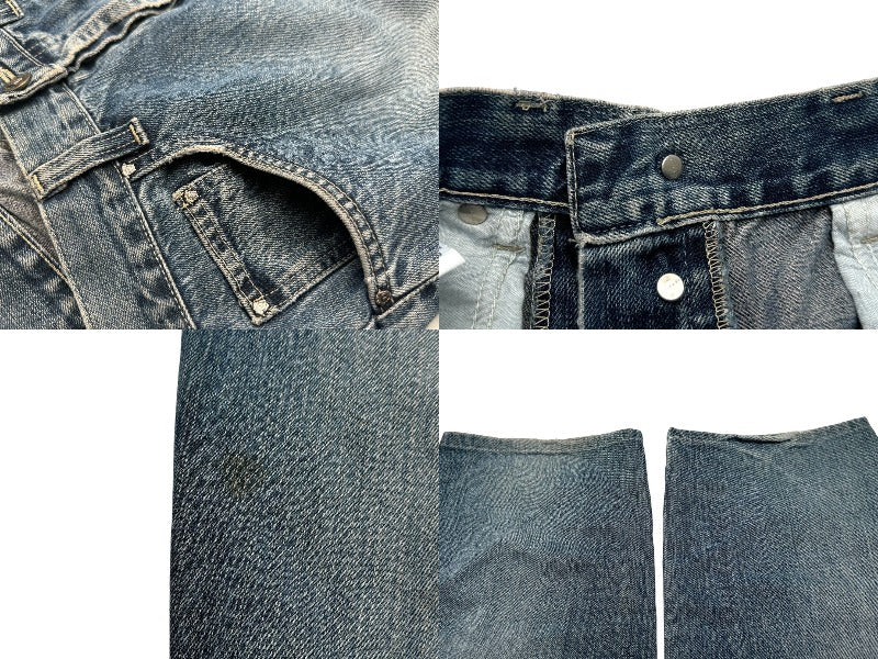 背面太もも付近にシミあり。ウエスト、ポケット、股、裾部分にスレによる擦り切れあり。タバコの匂いあり。全体的に色落ちあり。中古品としてご使用いただける状態です。
