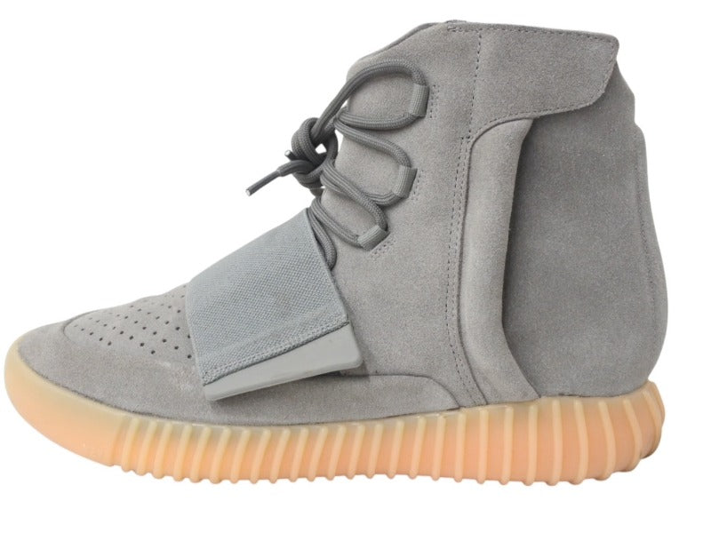 上質なグレーのプレミアムスエードで仕上げ、本コレクションでは初めてのガムソールを採用。透き通ったガムソールには、衝撃吸収性と反発力を兼ね備えたクッション素材、BOOST™ フォームを搭載。ヒール部分には、上質なレザーとスウェード、前足部の通気性の高いメッシュのライニング、補強素材のアイレット、ストレッチの効いたベルクロのストラップ、そしてアイコニックなパーフォレイテッドトウキャップが施されている。