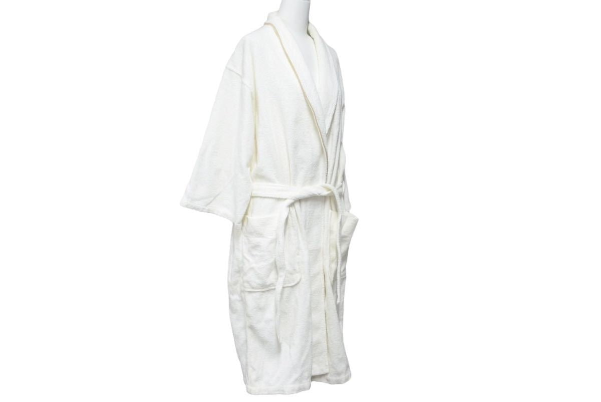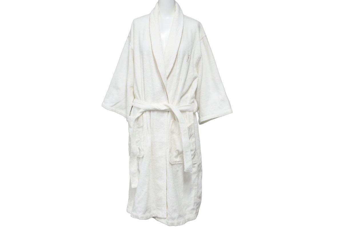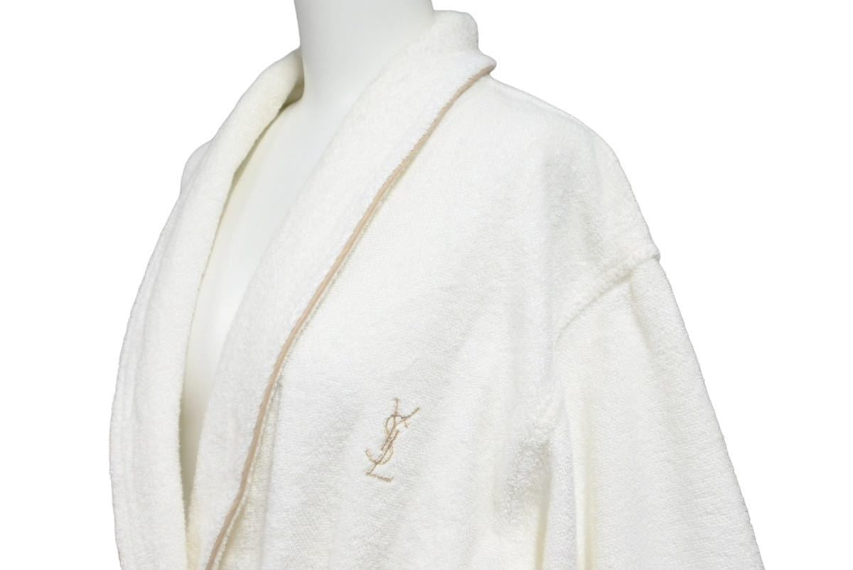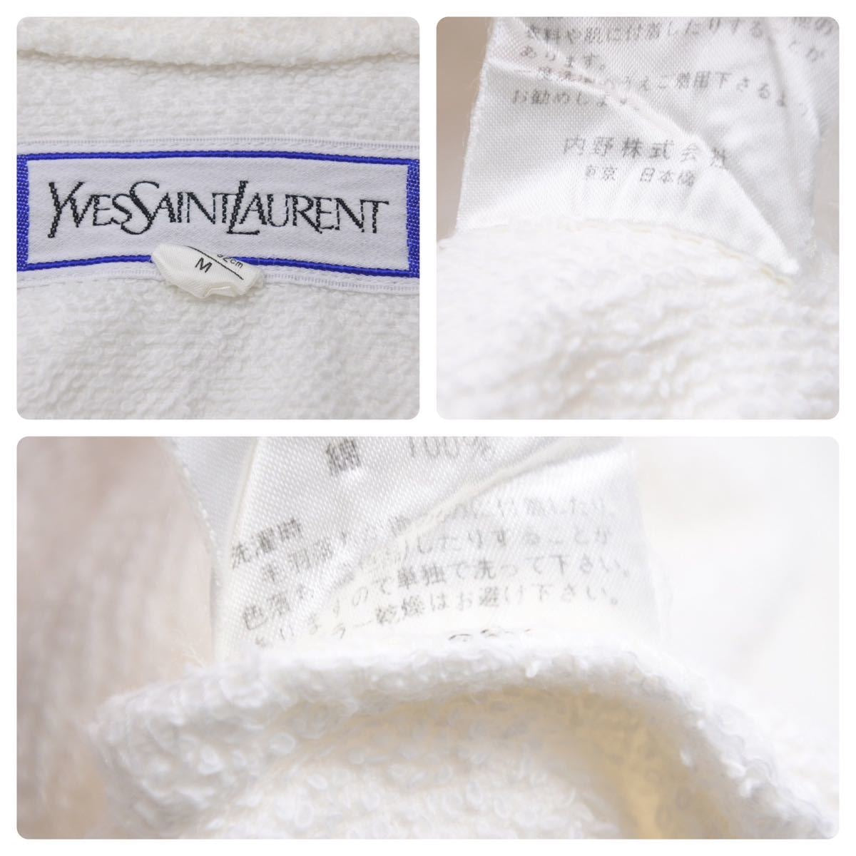 YVES SAINT LAURENT イヴ サンローラン バスローブ ガウン ルームウェア ロゴ刺繍 タオル地 ホワイト サイズM 美品 中古 44528