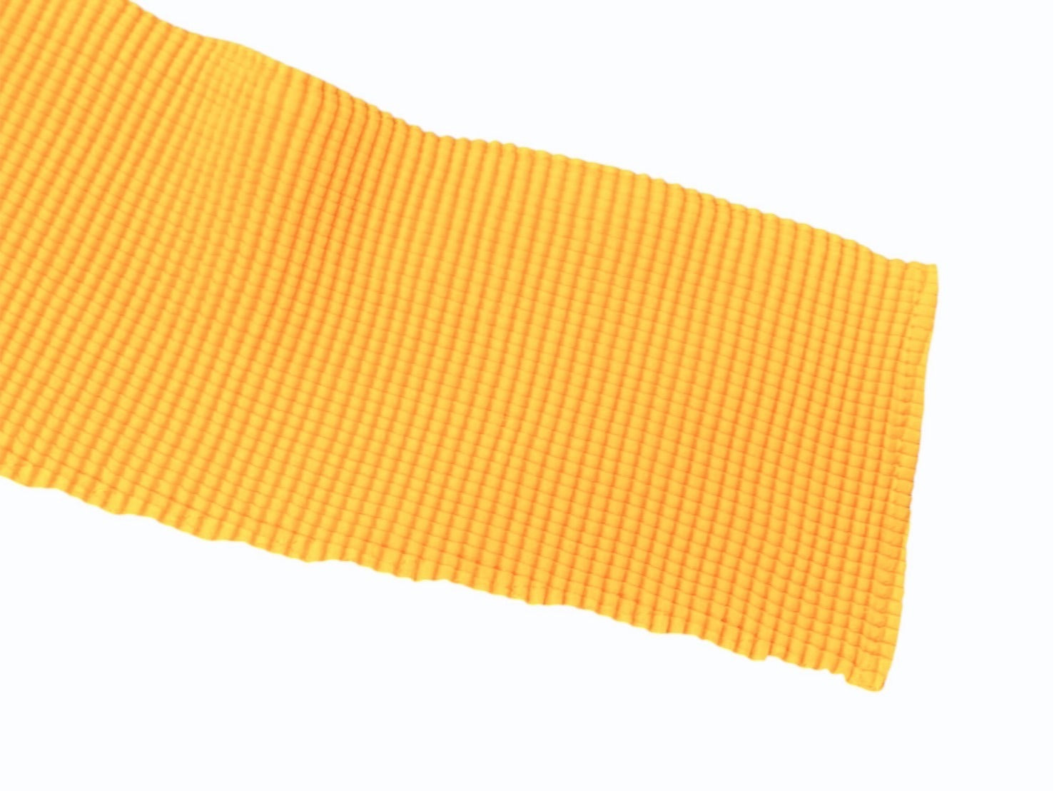 縦と横にプリーツのかかった、伸縮性があるストレッチプリーツのハイネック長袖トップス。