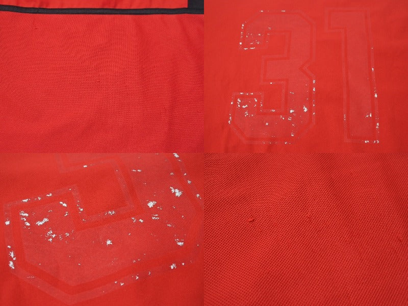 ネック部分毛玉、使用感あり。スポンサーロゴ部分汚れあり。両面裾部分ほつれあり。袖口部分ほつれ、やや毛玉あり。背番号部分剥げあり。内側印字薄れあり。