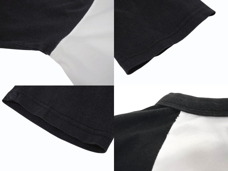 毛羽立ちあり。プリントにクラックあり。表面にシミ、黄ばみ、色褪せ、ヤケあり。裾部分に毛玉あり。アームホールにほつれ、ピンホールあり。その他使用感の少ない状態です。