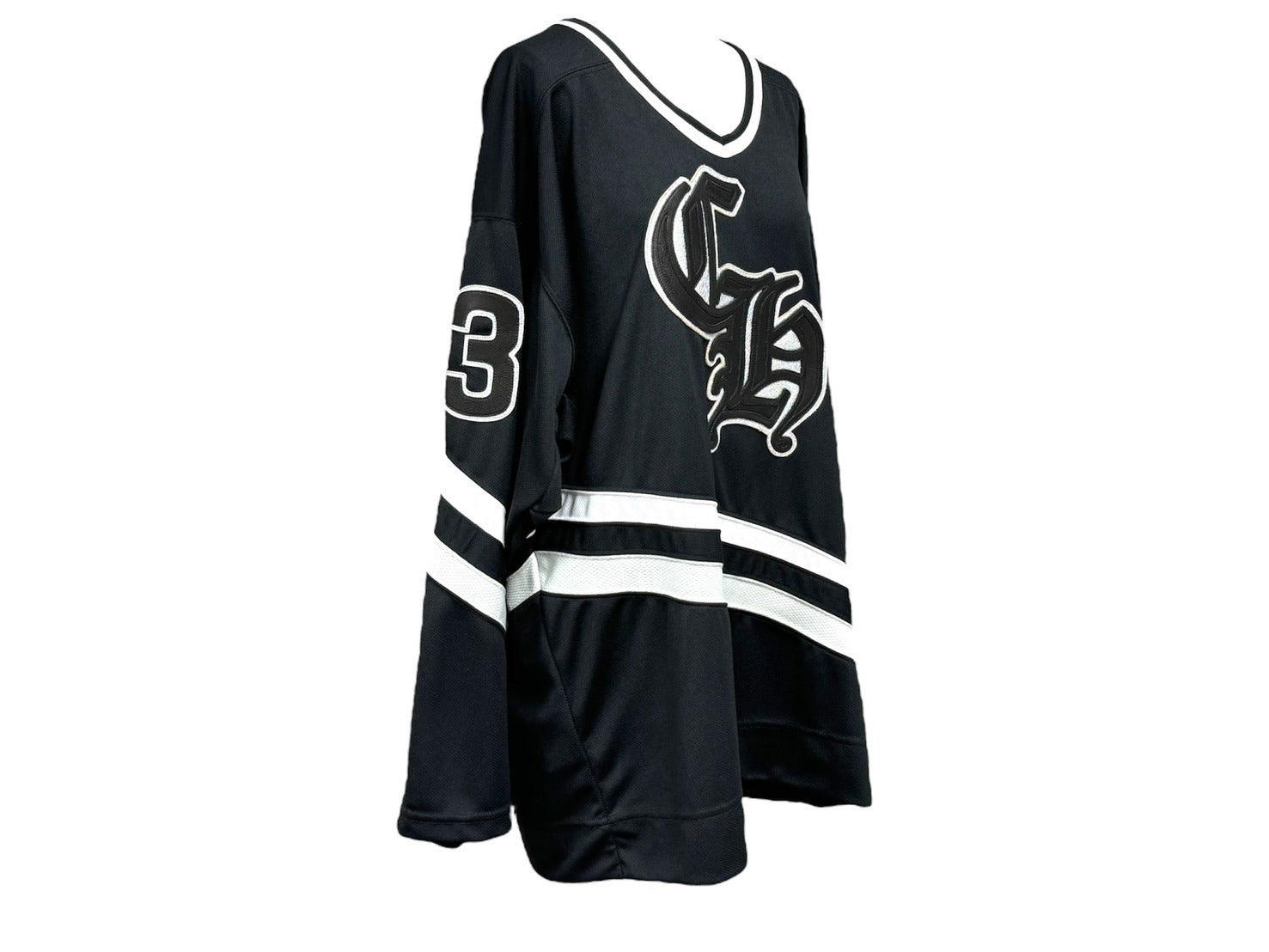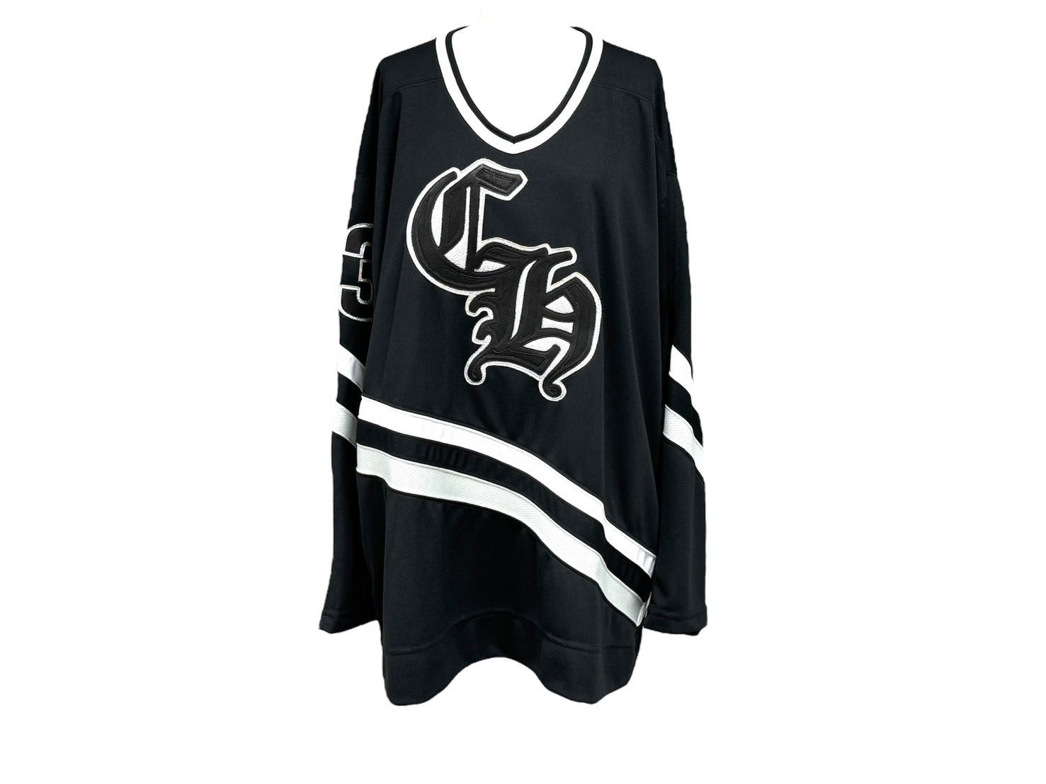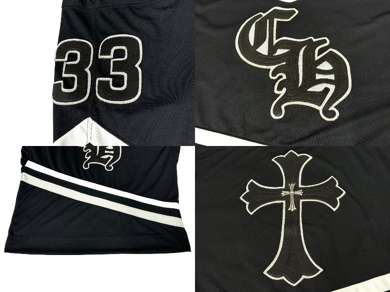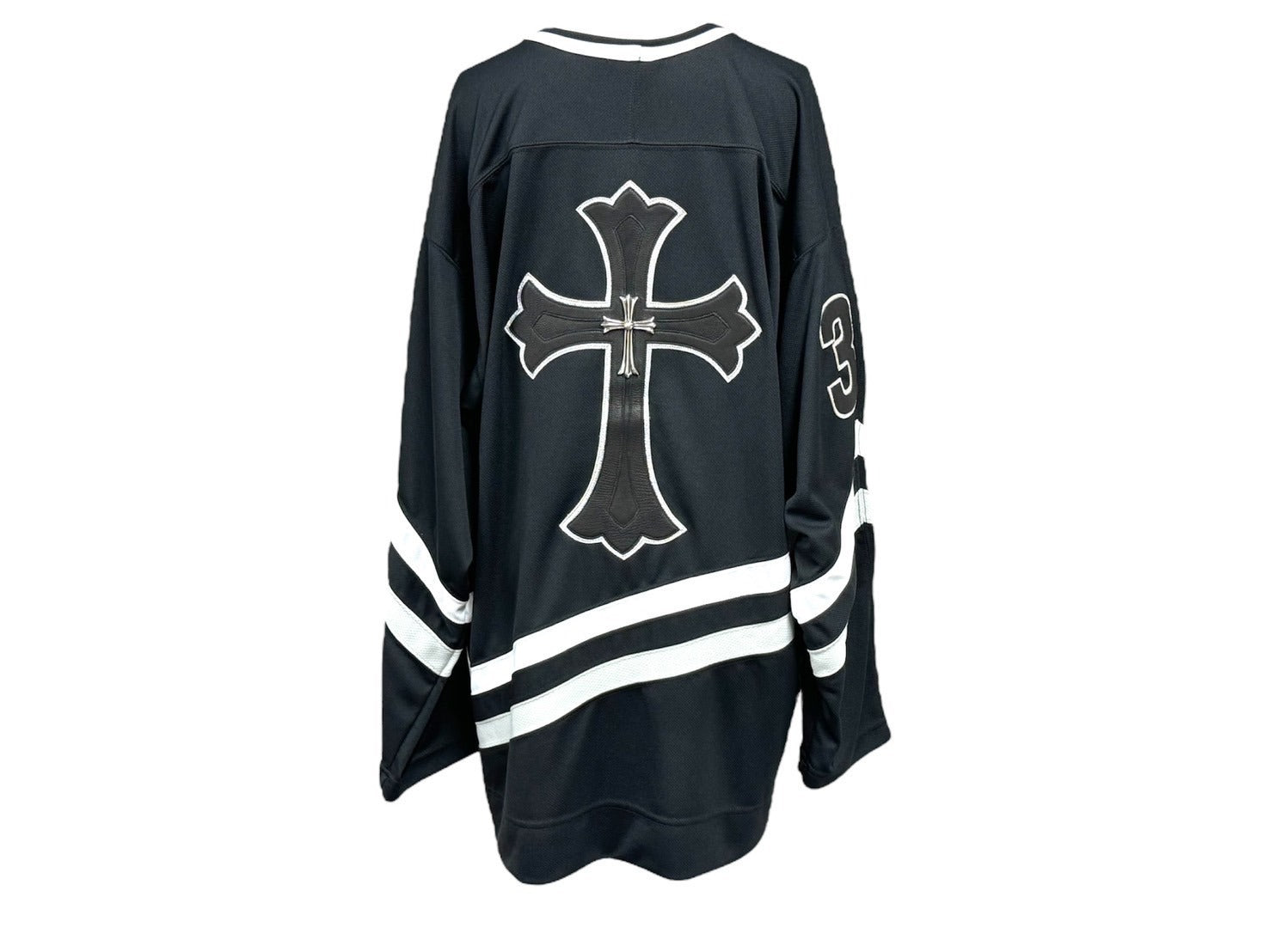 ゆったりしたシルエットで、フロントにはゴシック調の“CH”のイニシャル、右袖には“33”のナンバリングが配されている。ブラックタイプの背面にはブランドを象徴するレザーのクロスパッチが施されており、その中心にもシルバー製のクロスを配置。とても魅力的なアイテムです。
