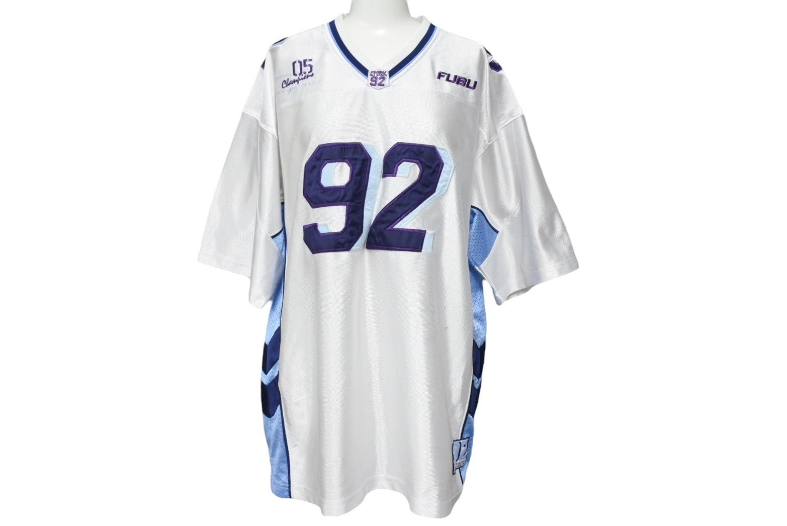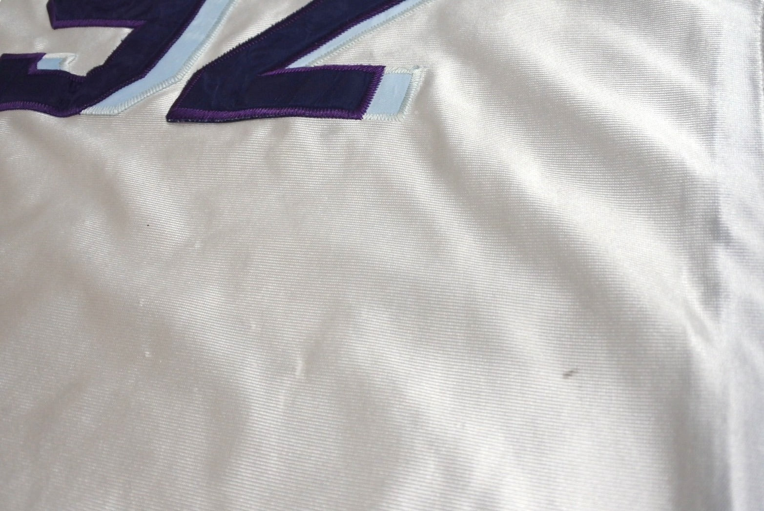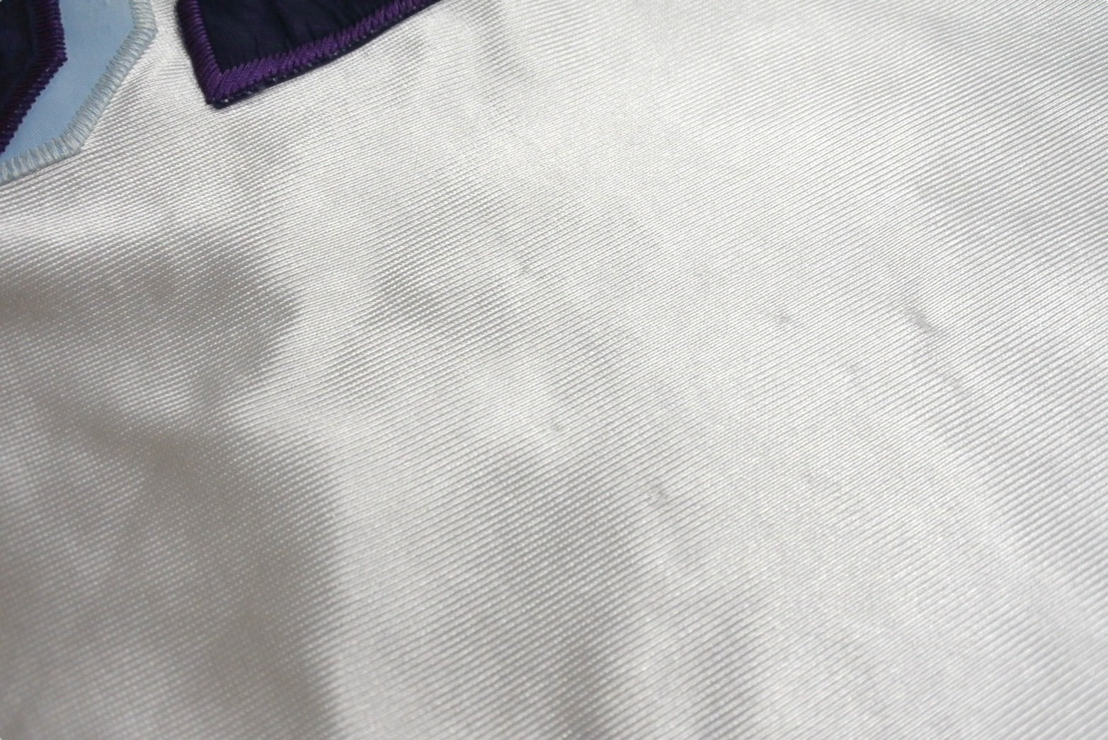 ナンバリング部分、生地浮きあり。前面首元付近、引っ掛け跡あり。前面腰付近、汚れあり。背面下部、汚れあり。その他特に目立つ傷や汚れのない状態です。