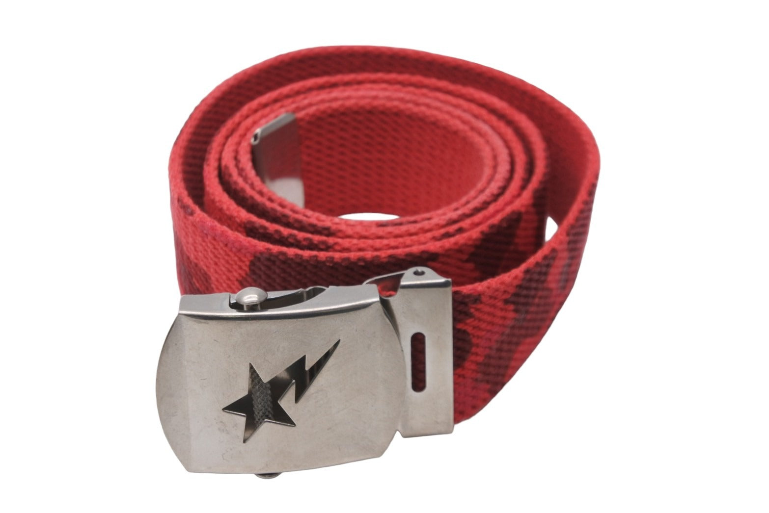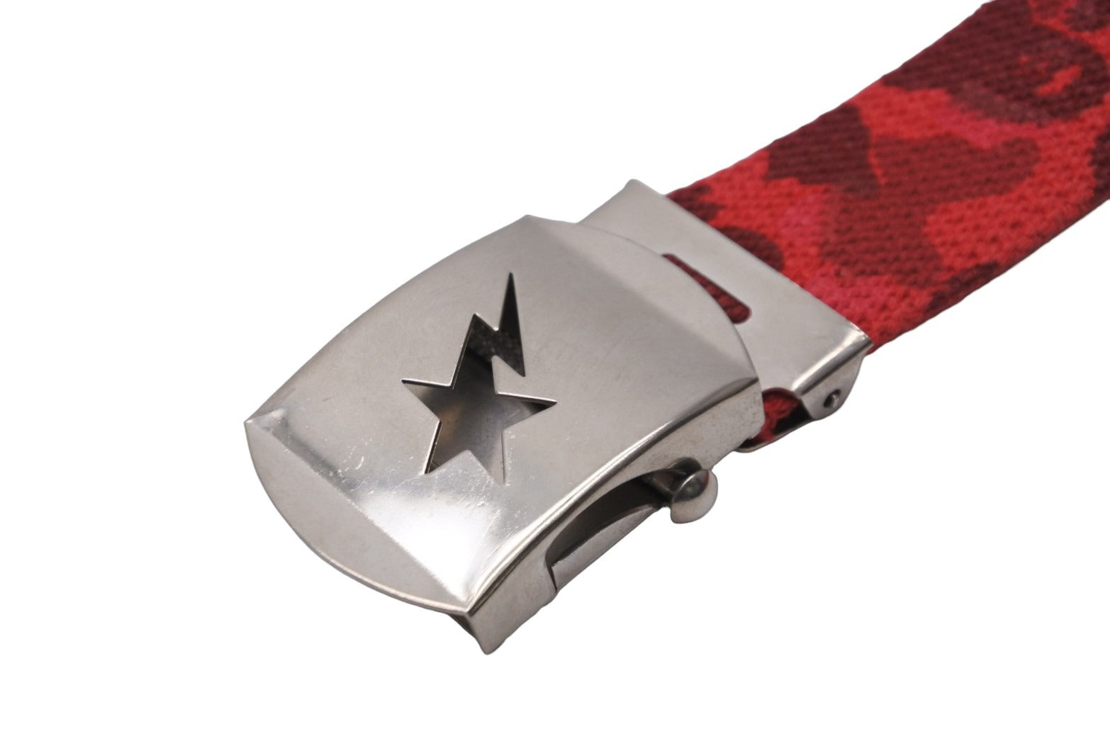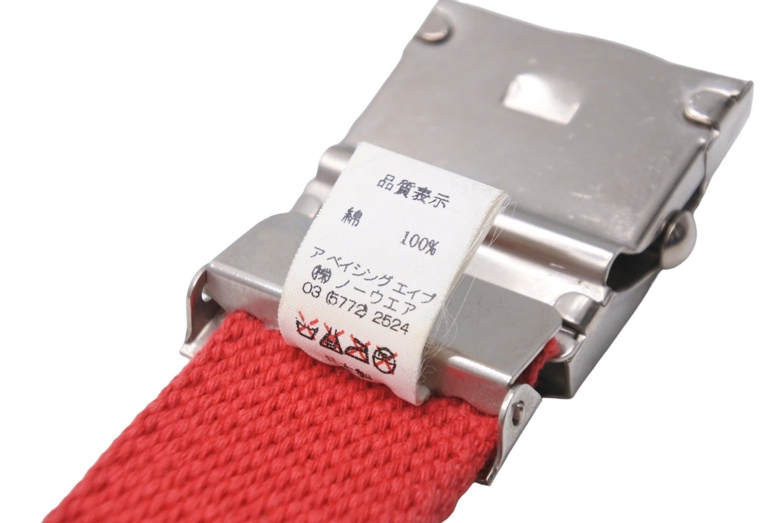 A BATHING APE アベイシングエイプ ベルト・バックル レッド カモ柄 コットン シルバー金具 美品 中古 53349