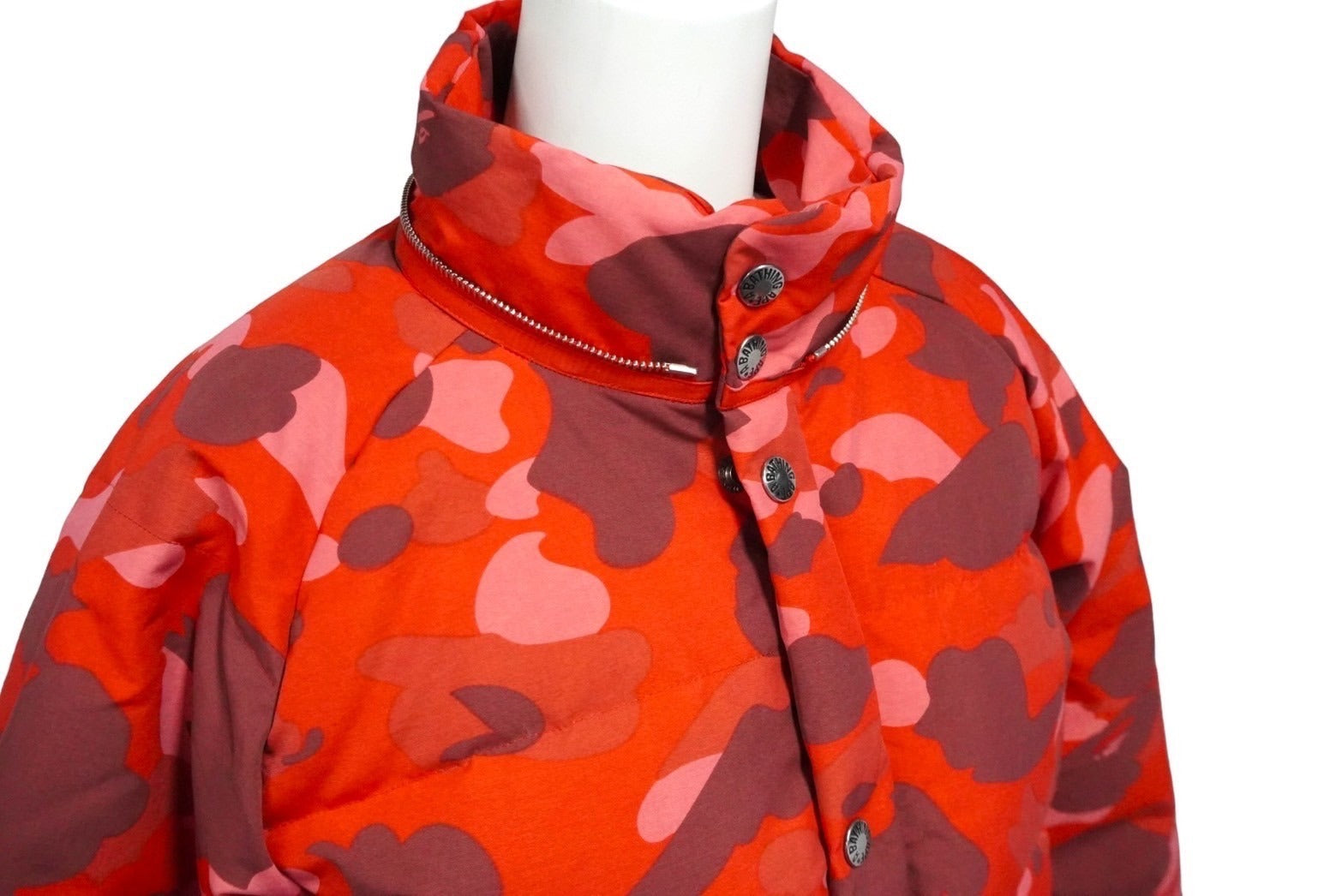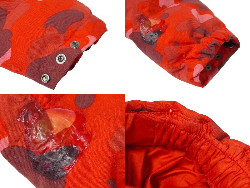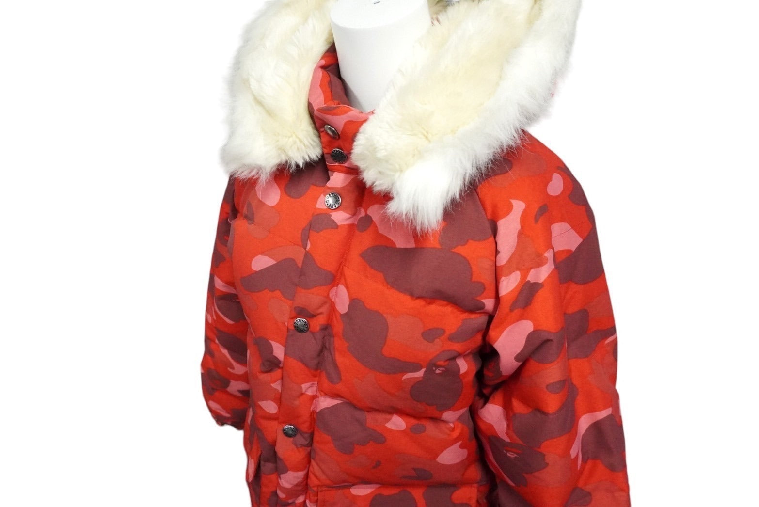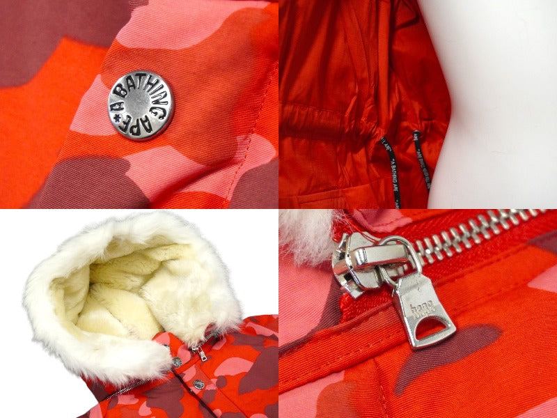 A BATHING APE アベイシングエイプ ダウンジャケット カモ柄 サイズXS レッド ナイロン ファー取り外し可能 良品 中古 59587