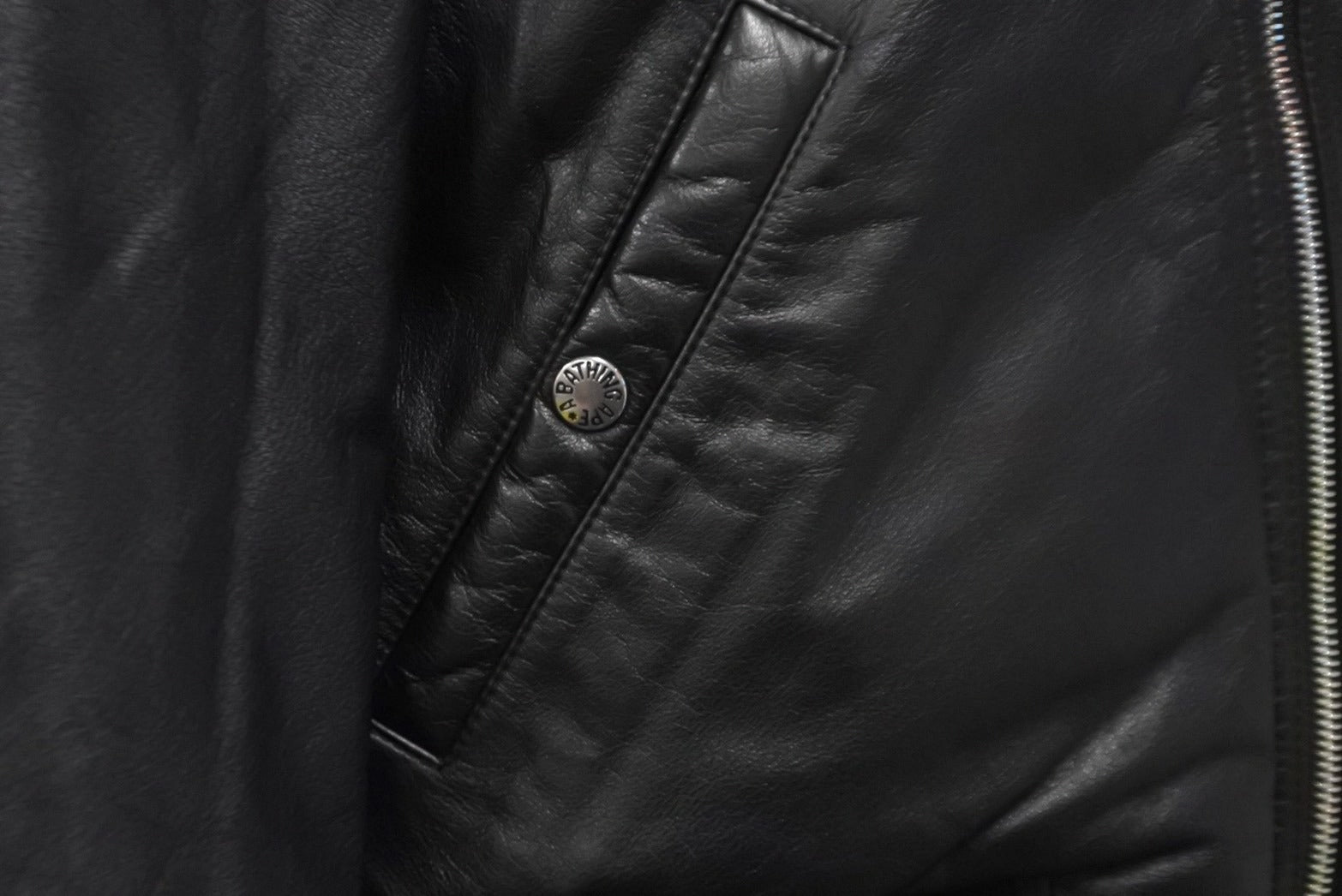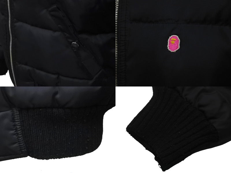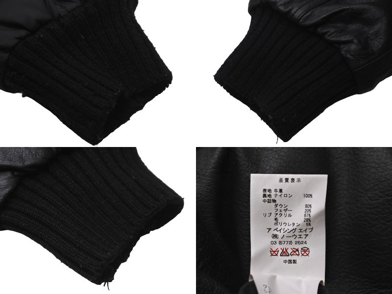 A BATHING APE アベイシングエイプ ダウンジャケット レザー ブラック 牛革 ナイロン レディース サイズTALL 美品 中古 59841