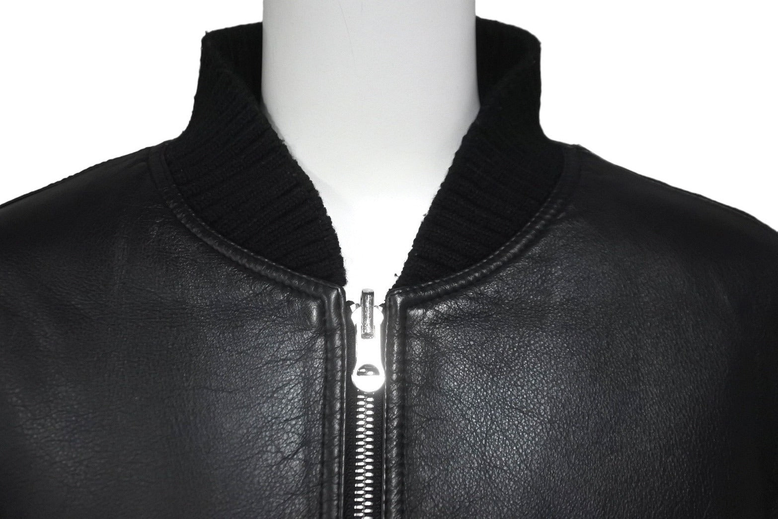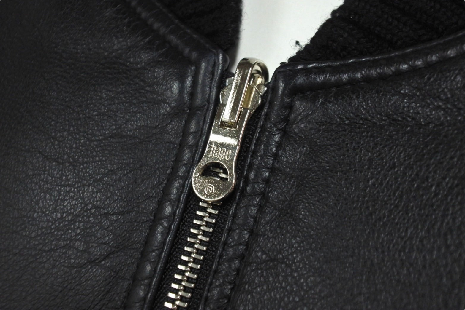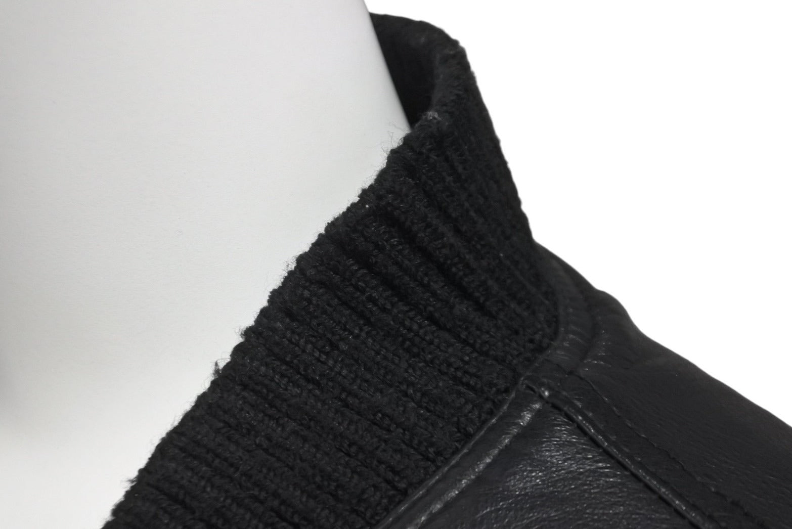 リブに毛玉、毛羽立ち、レザーに小ジワ、スレがあります。