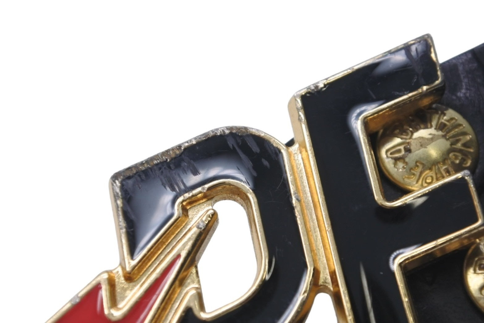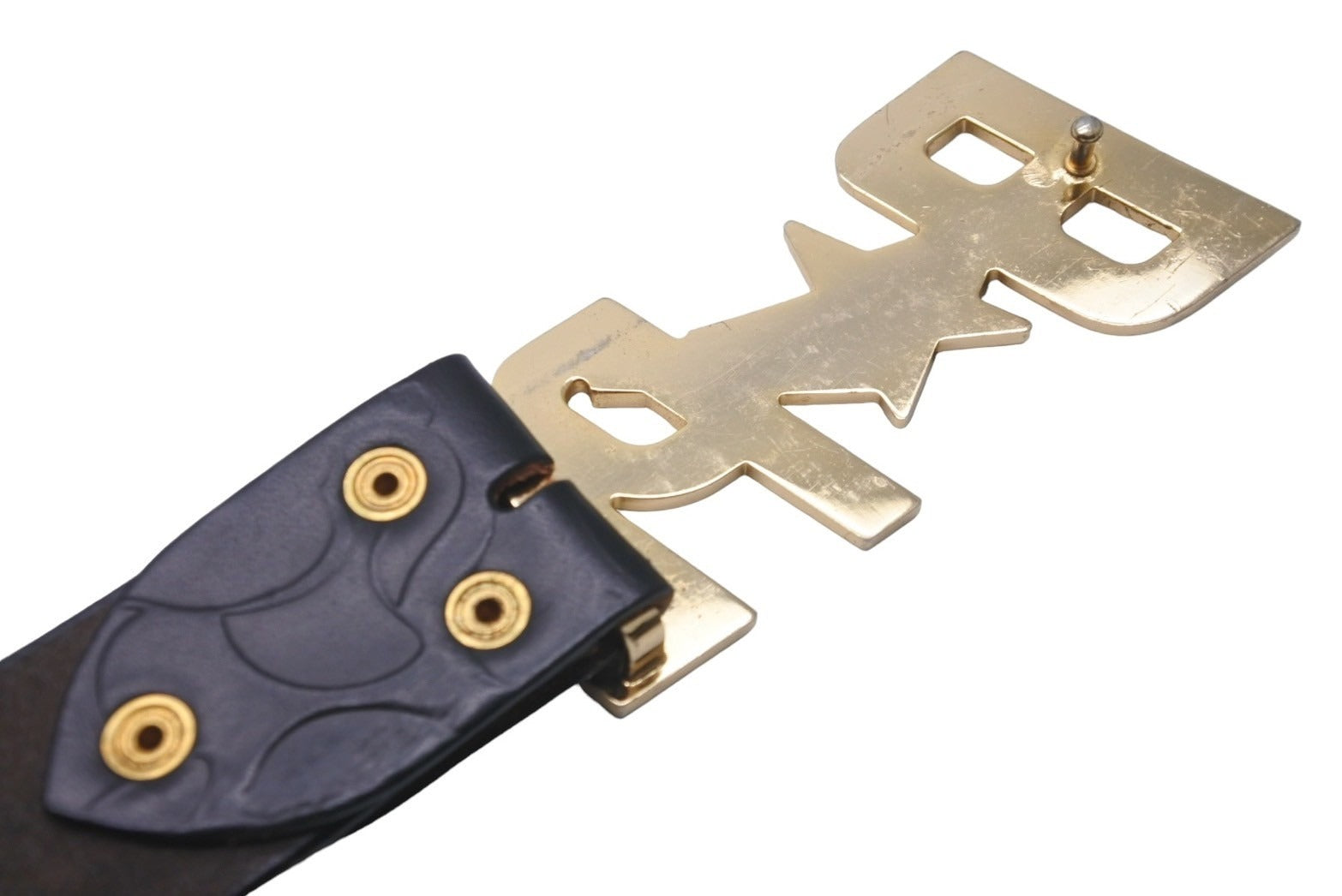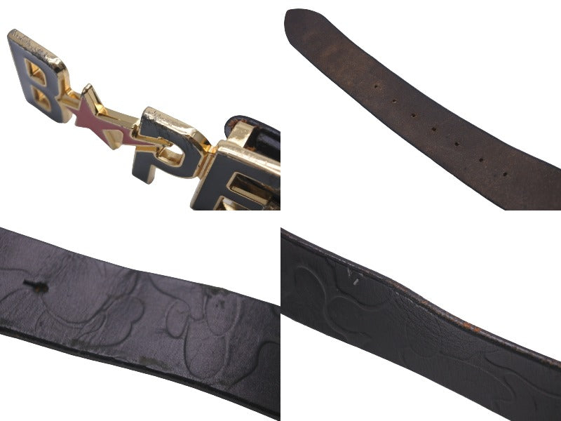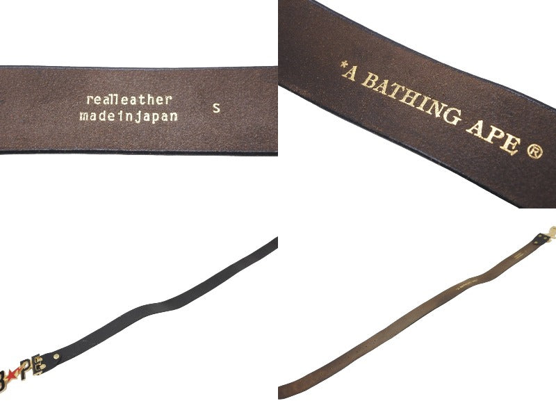 A BATHING APE アベイシングエイプ ベルト BAPESTA ベイプスタロゴバックル サイズS レザー ブラック ゴールド 美品 中古 59998