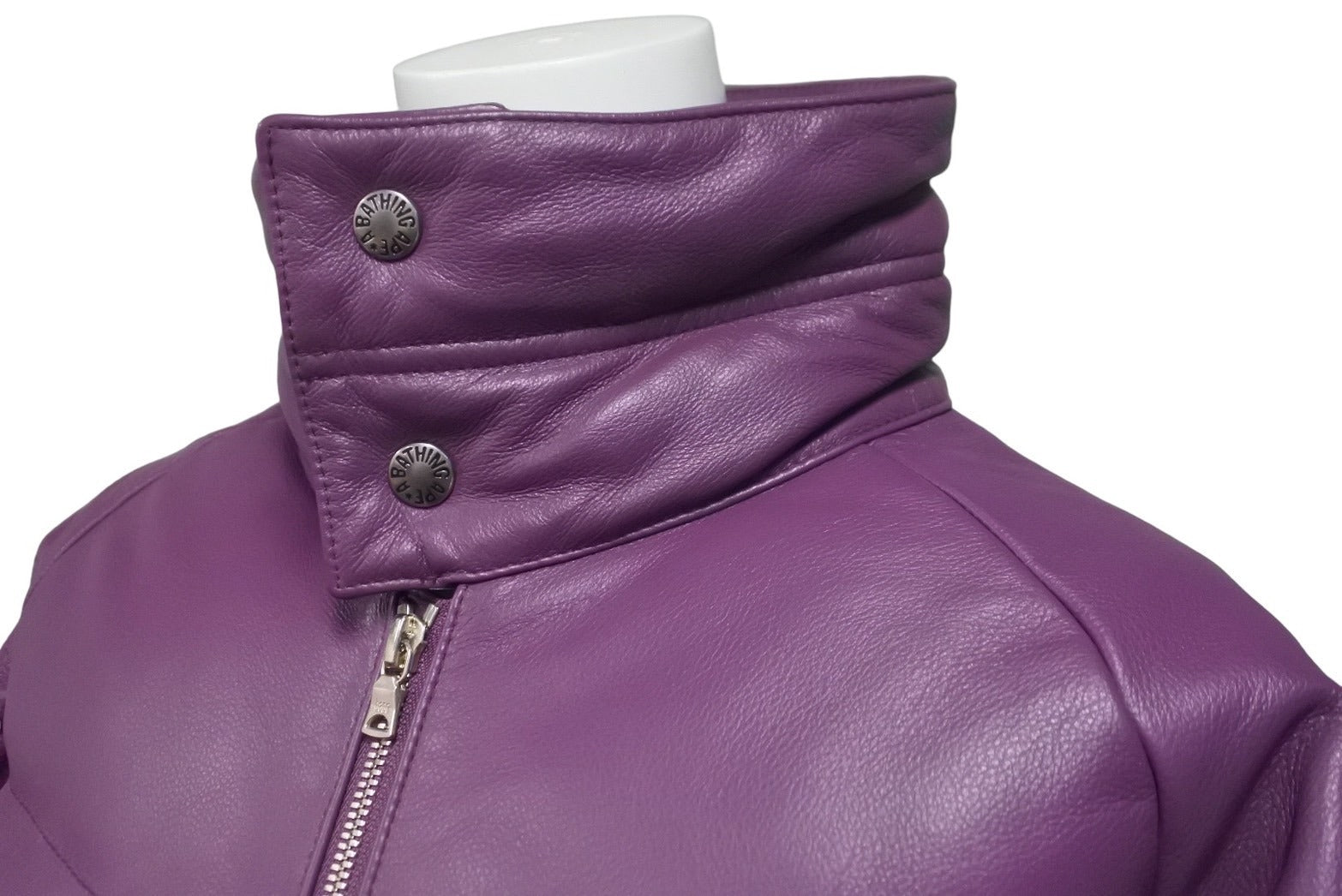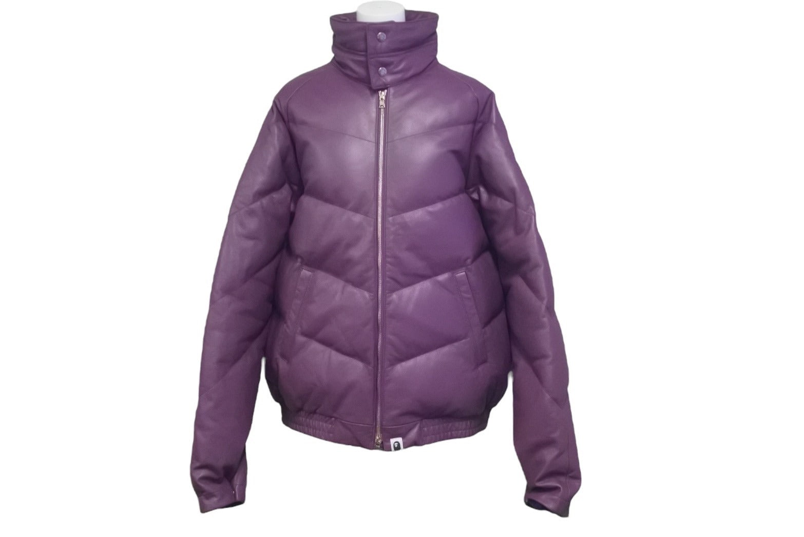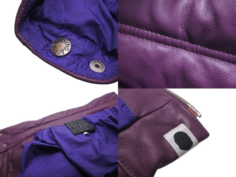 A BATHING APE アベイシングエイプ レザーダウンジャケット パープル ノーウェア期 NIGO サイズM 美品 中古 60037