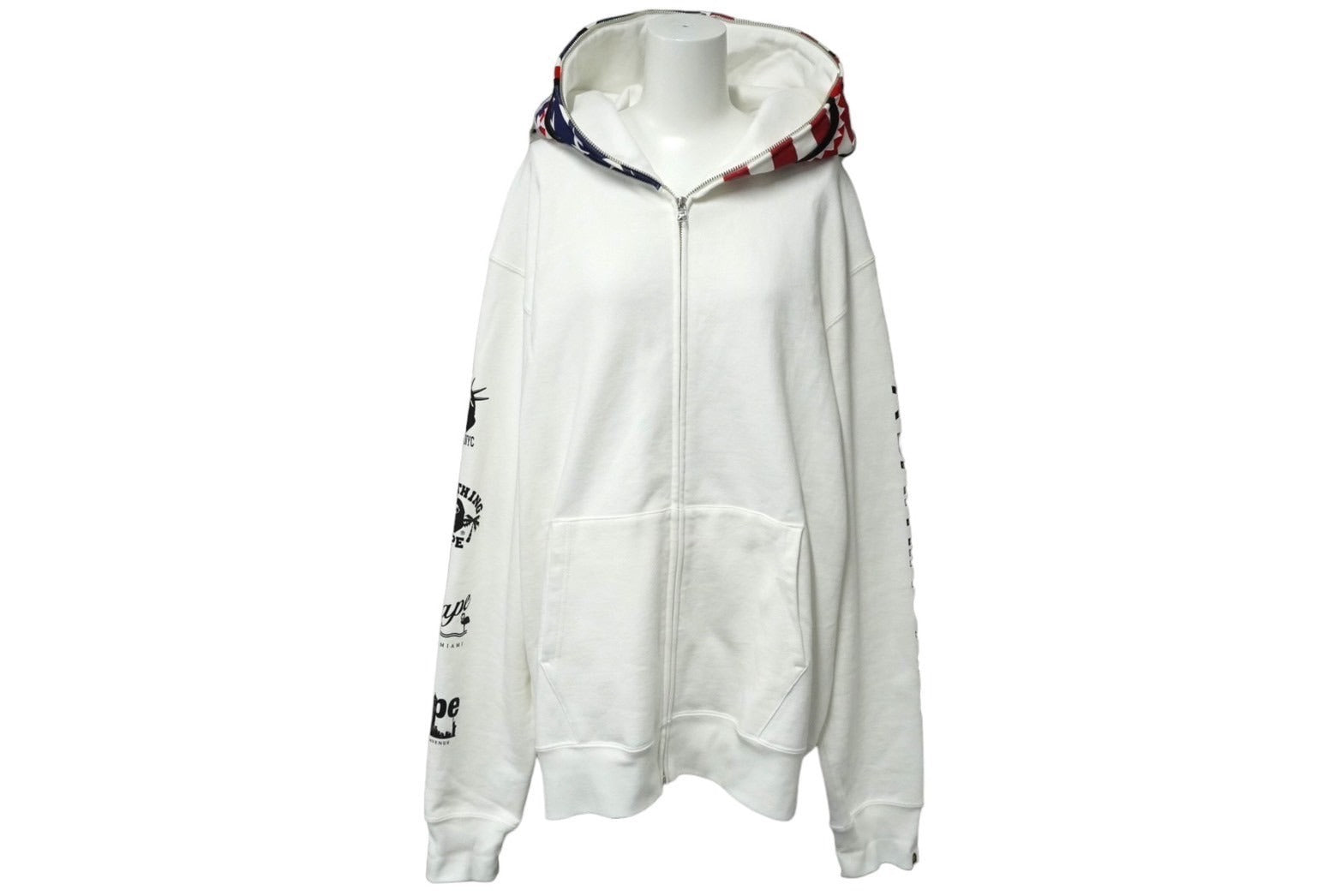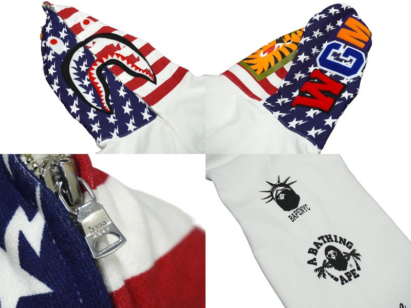 アメリカ限定 極美品 A BATHING APE アベイシングエイプ パーカー シャークパーカー ホワイト ネイビー レッド サイズXL 中古 60228