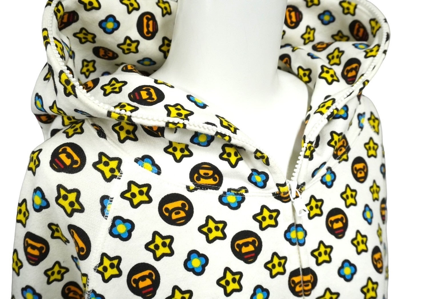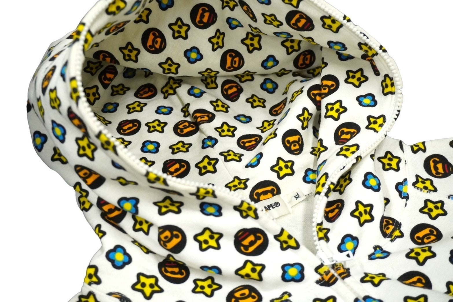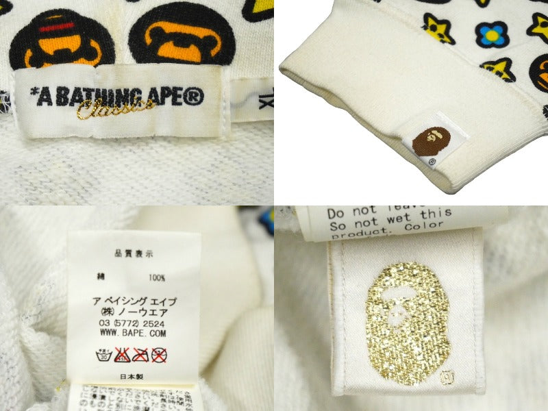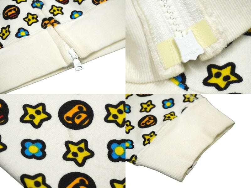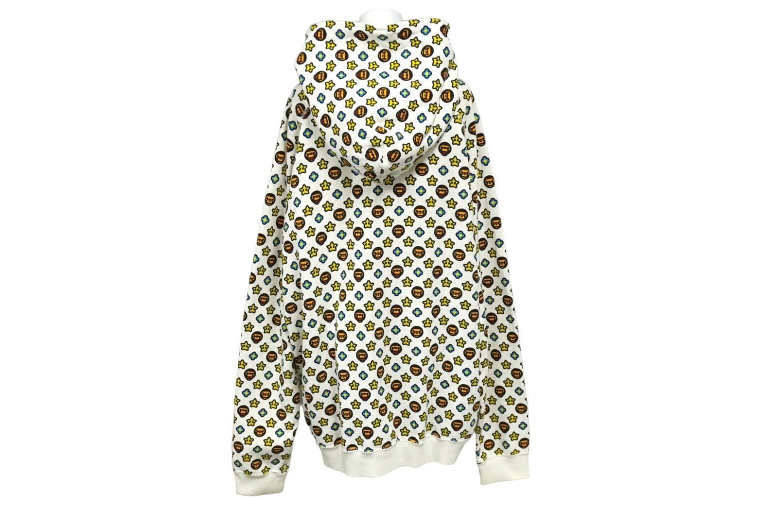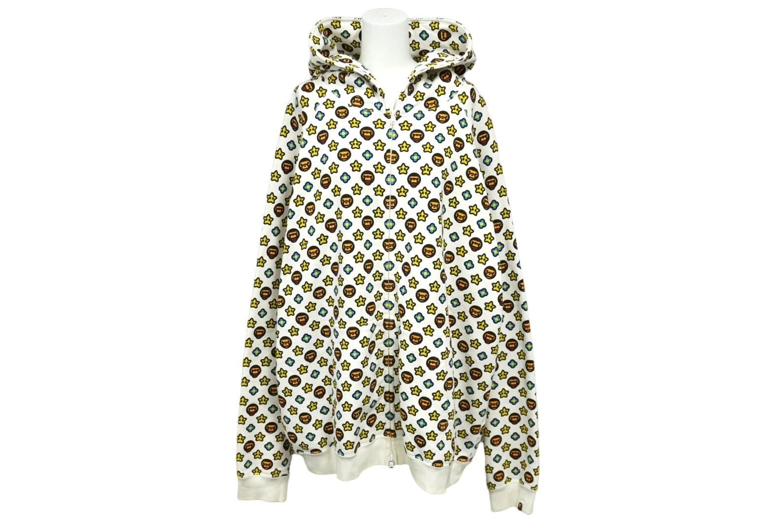 A BATHING APE アベイシングエイプ マイロ モノグラム パーカー フーディー ジップアップ コットン ホワイト XL 美品 中古 60230
