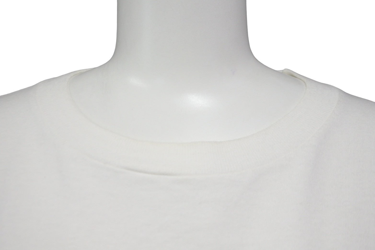フロント左肩付近に小さい汚れ1箇所あり。フロント下部付近薄シミあり。首元黄ばみあり。プリントにフェードあり。その他特に目立つ傷や汚れはございません。
