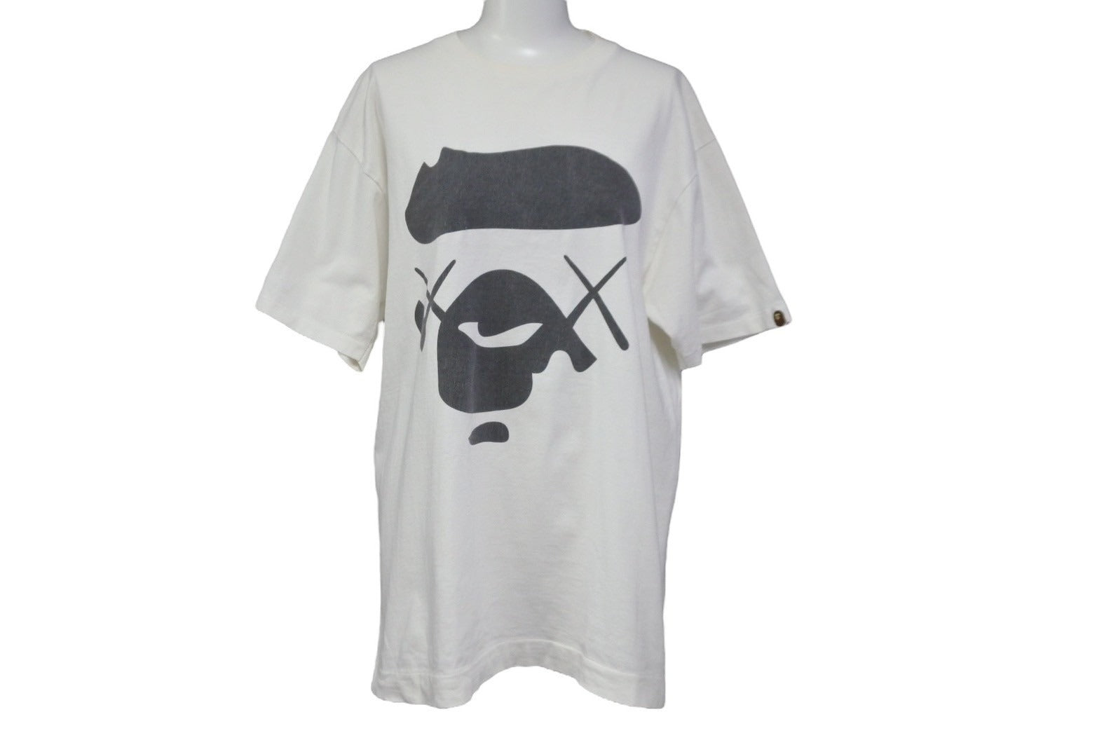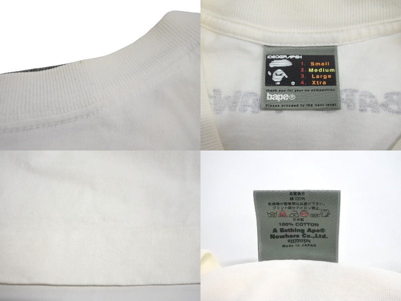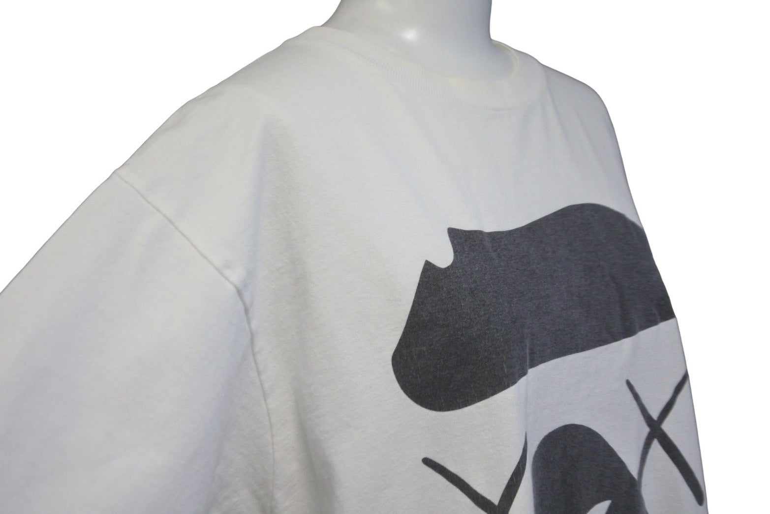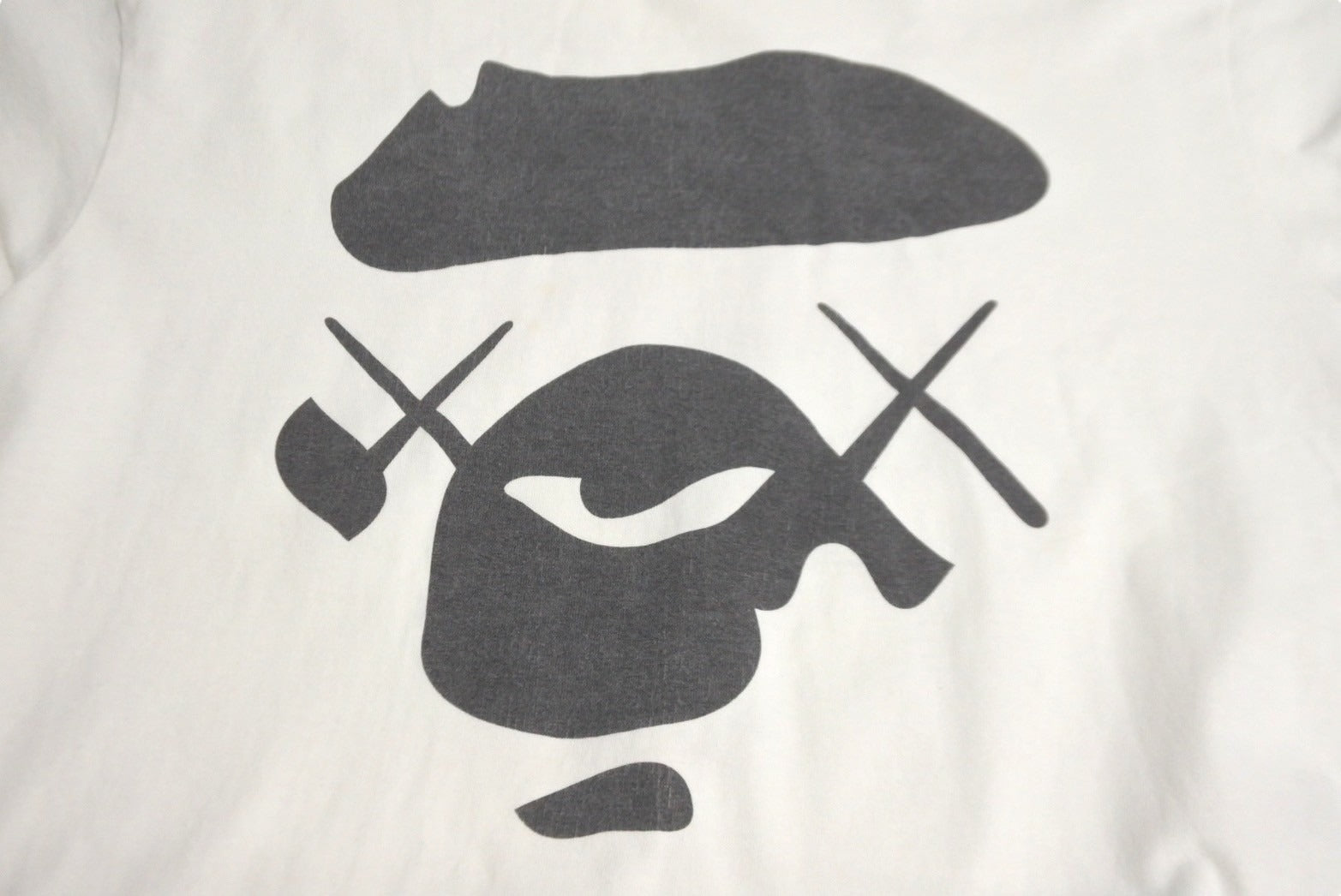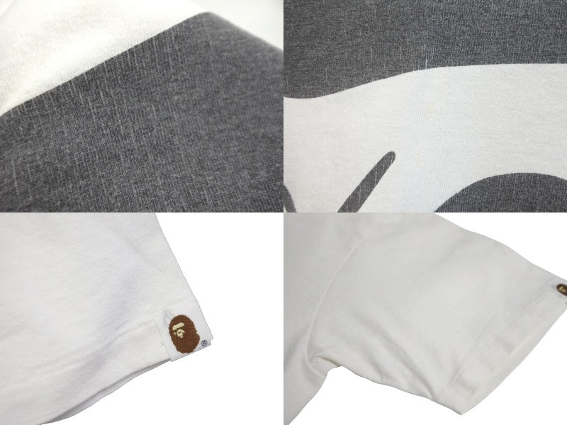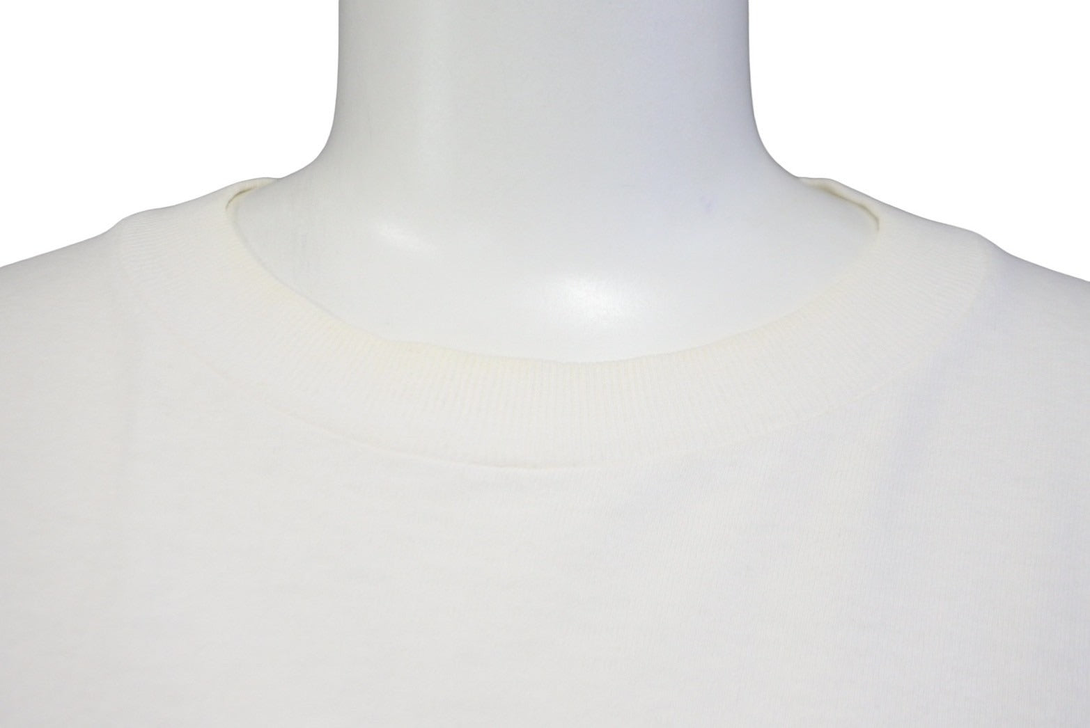 首元黄ばみあり。フロント胸付近シミあり。左袖先、裾付近、薄シミあり。プリントにフェード、ひび割れあり。その他特に目立つ傷や汚れのない状態です。