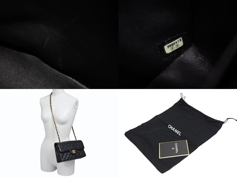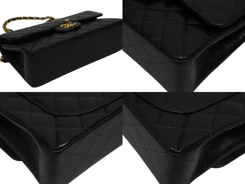 極美品 CHANEL シャネル マトラッセ23 Wフラップ Wチェーンショルダーバッグ 6番台 キャビアスキン ココマーク ブラック 中古 4b010056