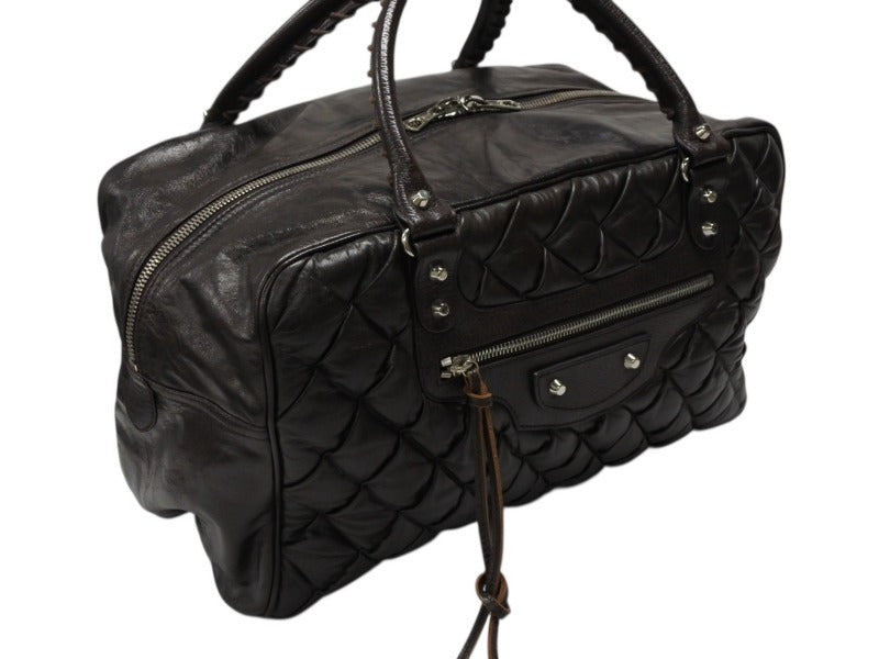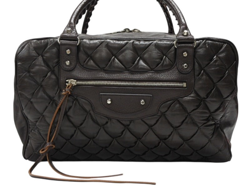 BALENCIAGA バレンシアガ マトラッセ シティ ハンドバッグ 168032 ブラウン レザー シルバー金具 美品 中古 4b008268