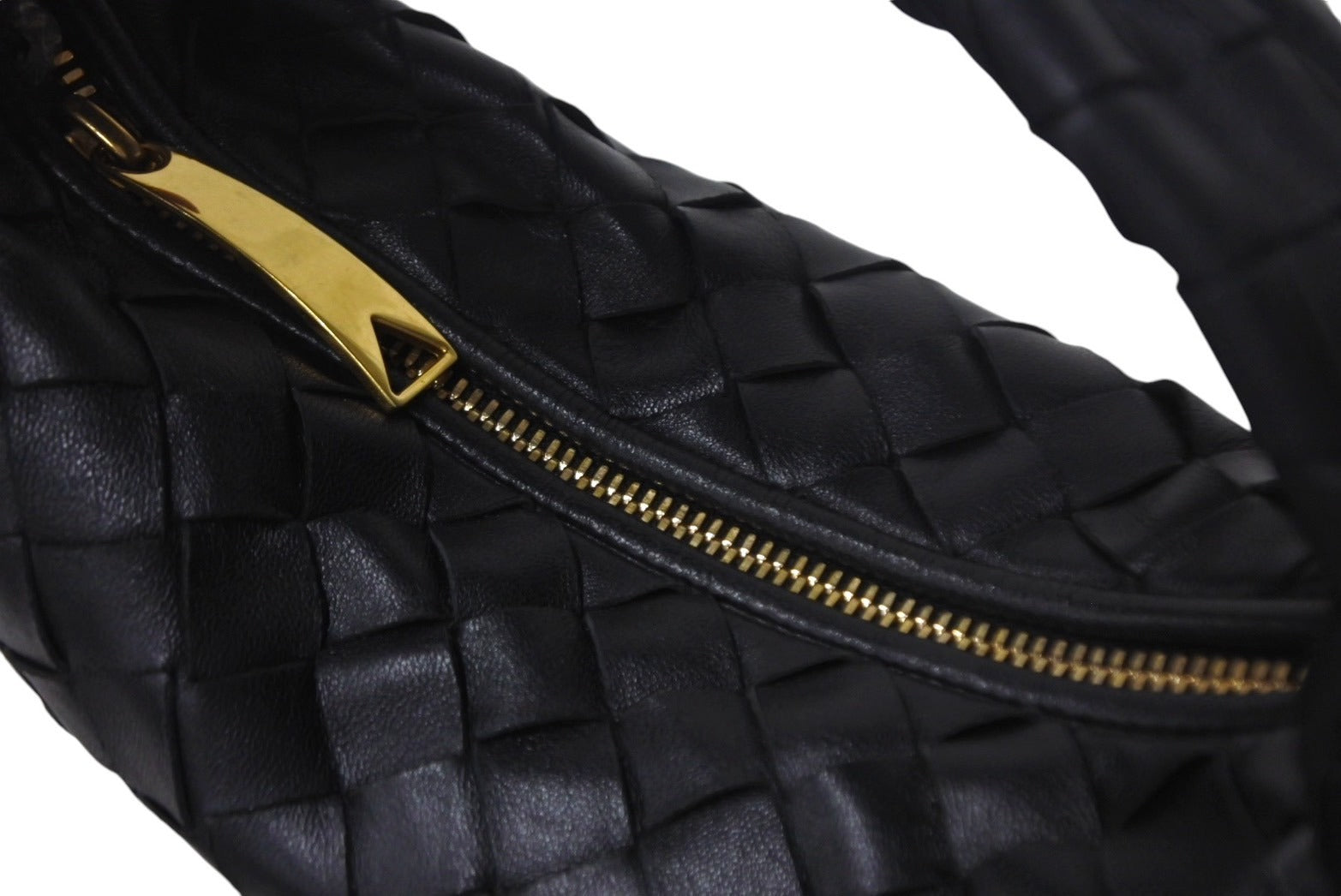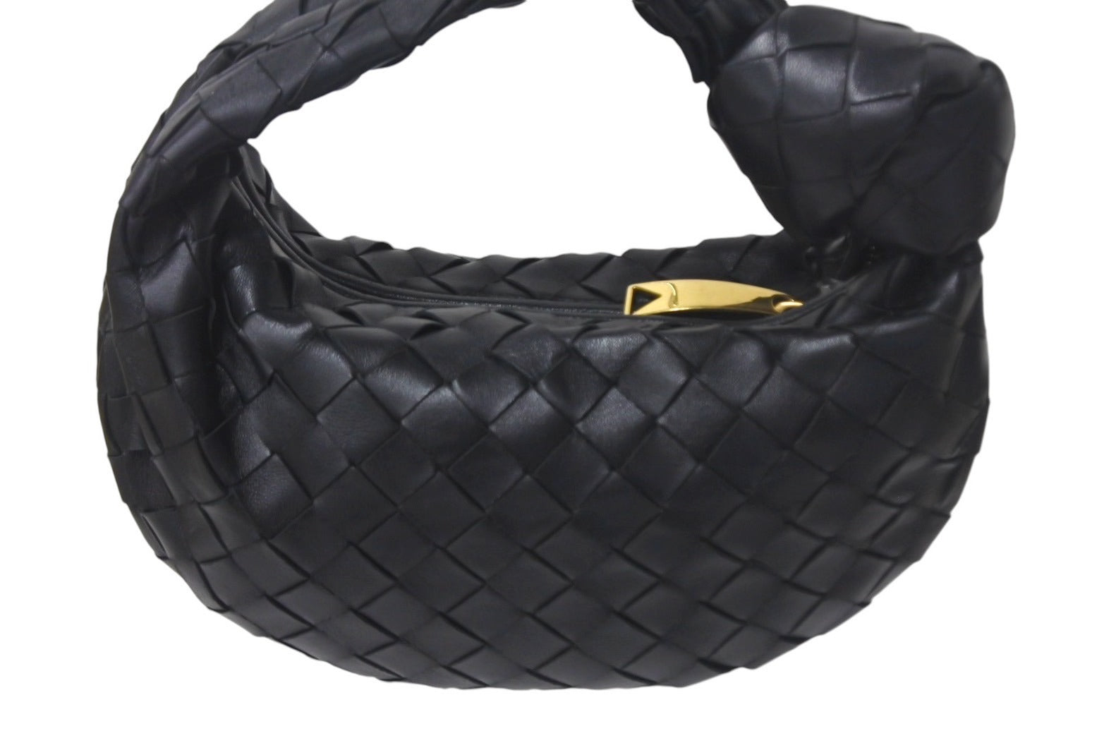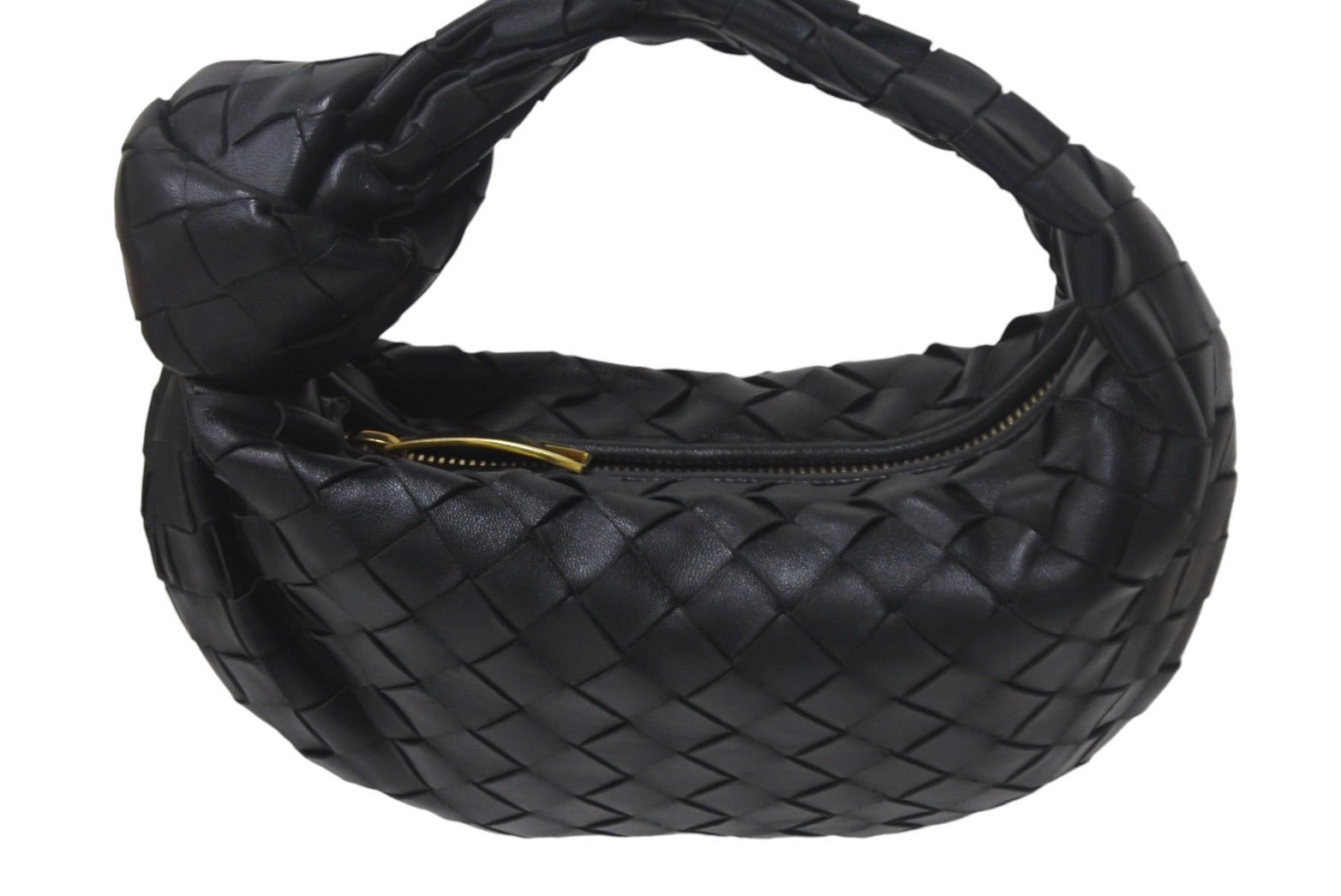 ノットハンドルが特徴的なイントレチャートレザー製ハンドバッグ。内側はワンフロアのメインコパーメント。貴重品を持ち運ぶのに便利なサイズ感です。