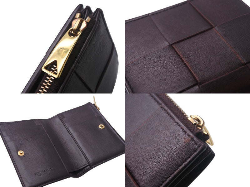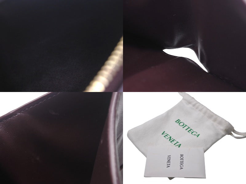 BOTTEGA VENETA ボッテガヴェネタ マキシイントレチャート コンパクトウォレット 財布 ワインレッド レザー ゴールド 美品 中古 4c069063