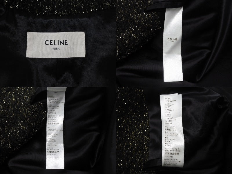 極美品 CELINE セリーヌ チェスターコート 2M159264F サイズ48 アクリル 金属繊維 ブラック ゴールド 中古 4b004947