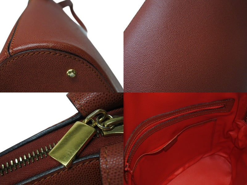 CELINE セリーヌ ロゴリング ショルダーバッグ トートバッグ M94 レザー レッド ゴールド金具 美品 中古 4b006088