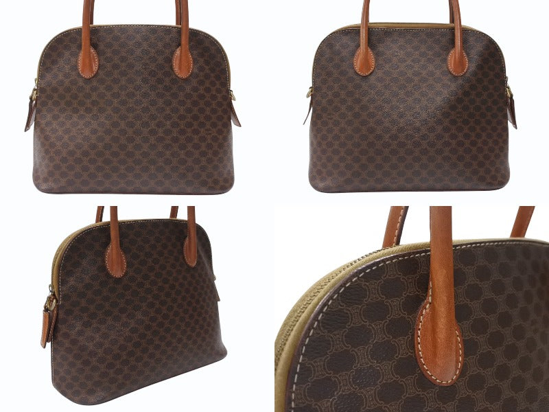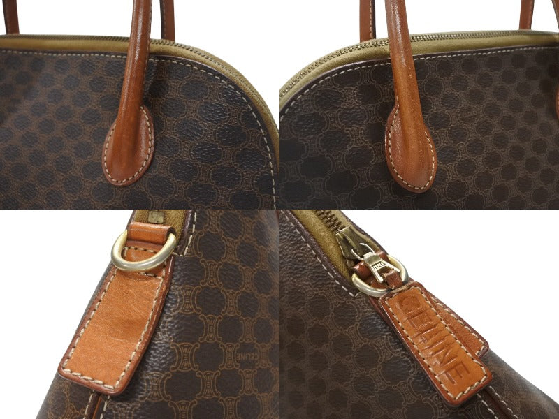 CELINE セリーヌ マカダム柄 ハンドバッグ ロゴ ゴールド金具 PVC レザー ブラウン 茶色 鞄 美品 中古 4b007247