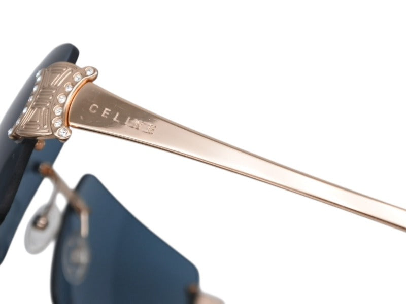 CELINE セリーヌ サングラス アイウェア SC 1048S トリオンフ ラインストーン グリーン ゴールド 1048S 美品 中古 4b007906