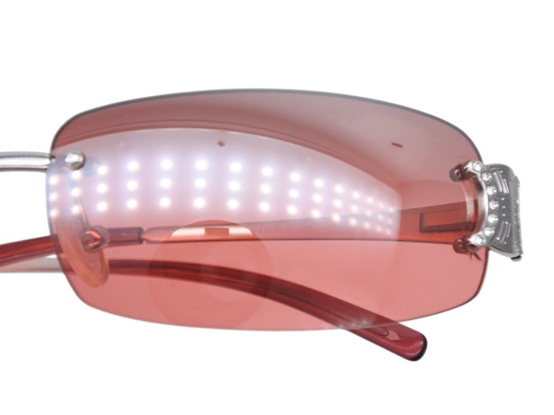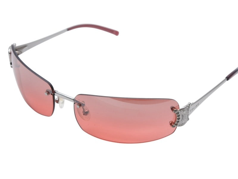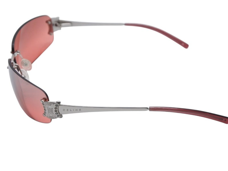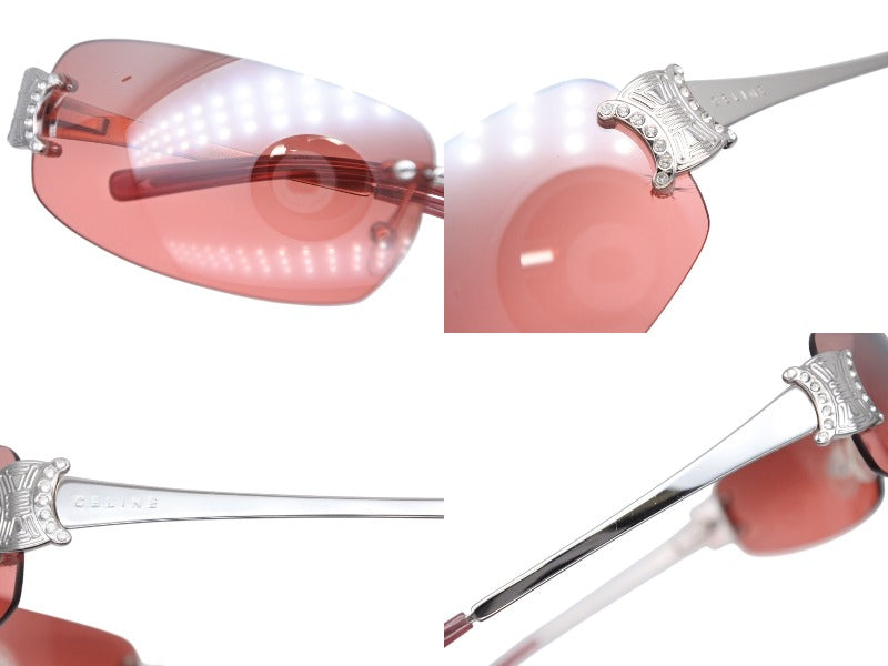 CELINE セリーヌ サングラス アイウェア SC 1047S トリオンフ ラインストーン レッド シルバー 美品 中古 4b007909