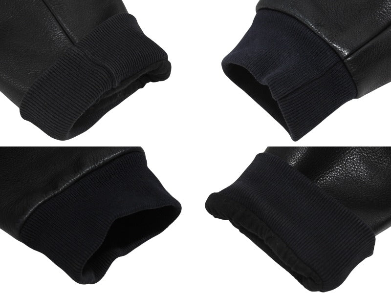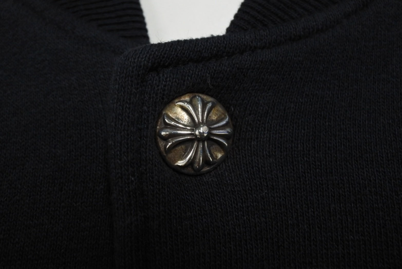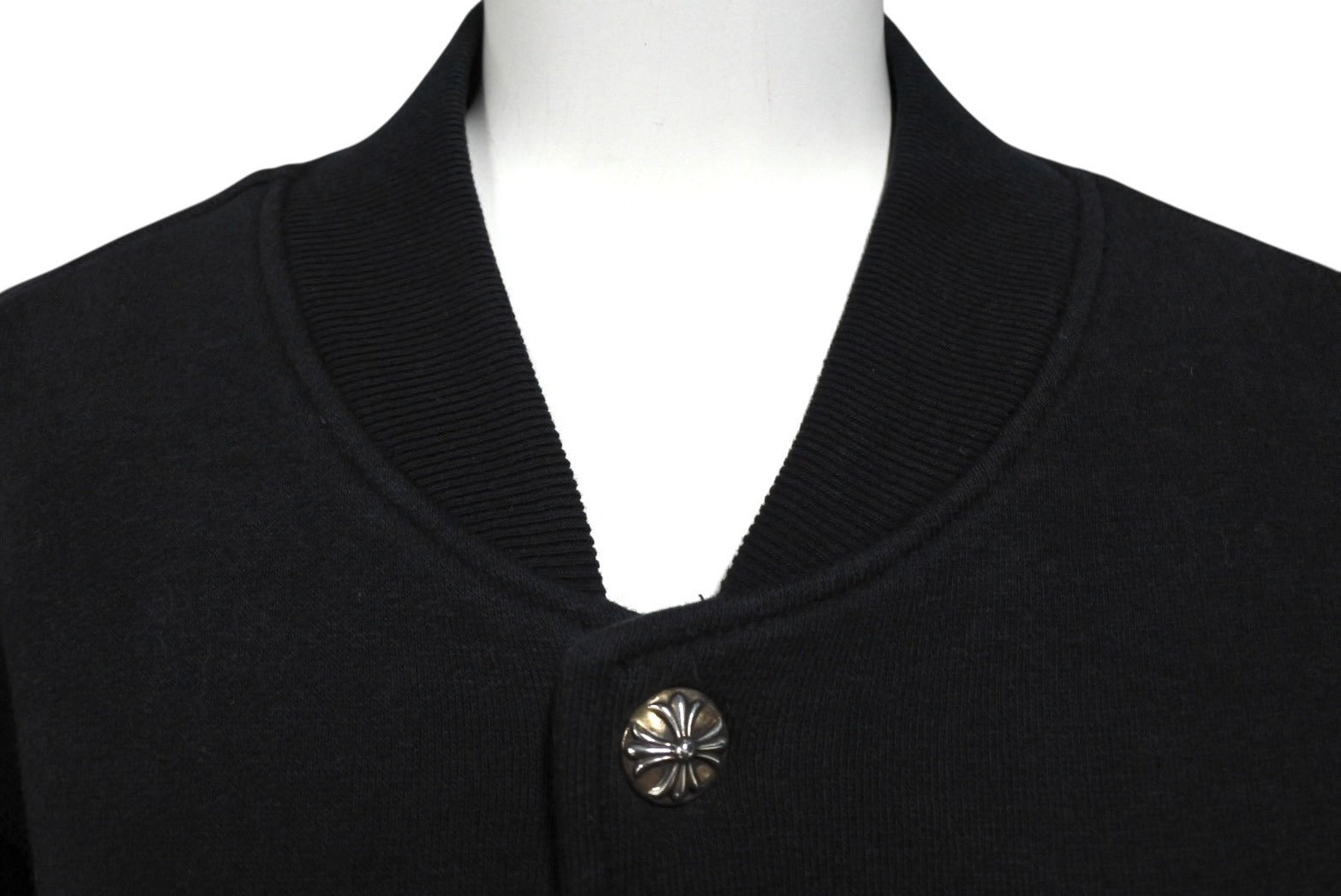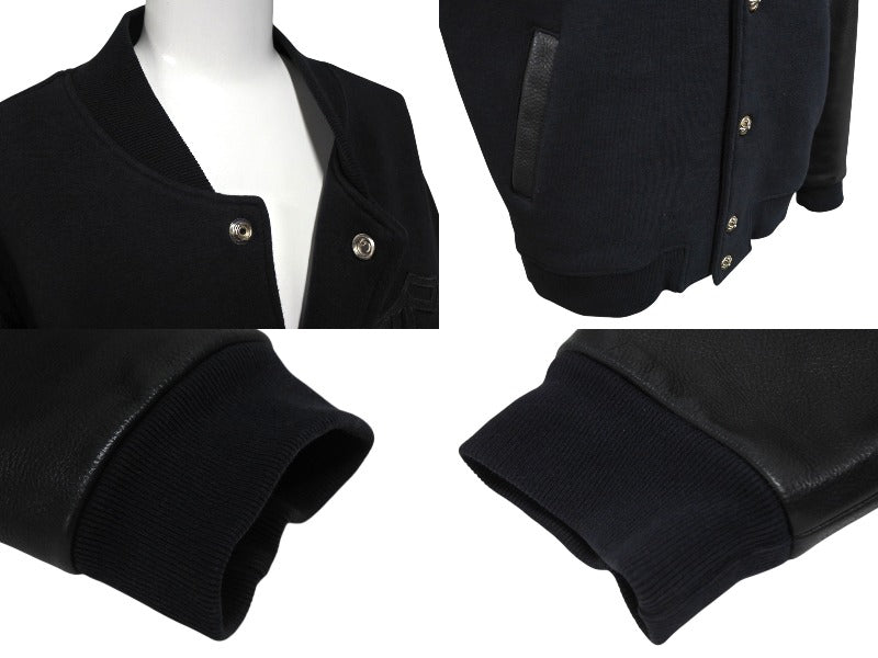 CHレザーパッチとクロスボールボタンが目を惹くバーシティジャケットです。