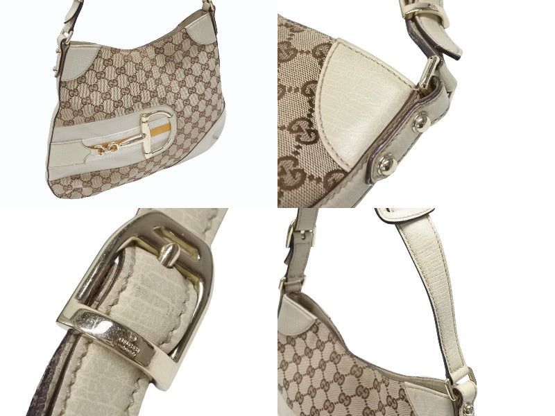 GUCCI グッチ ワンショルダーバッグ 137388 213048 イタリア製 GGキャンバス レザー ベージュ アイボリー ゴールド金具 美品 中古 4b007479