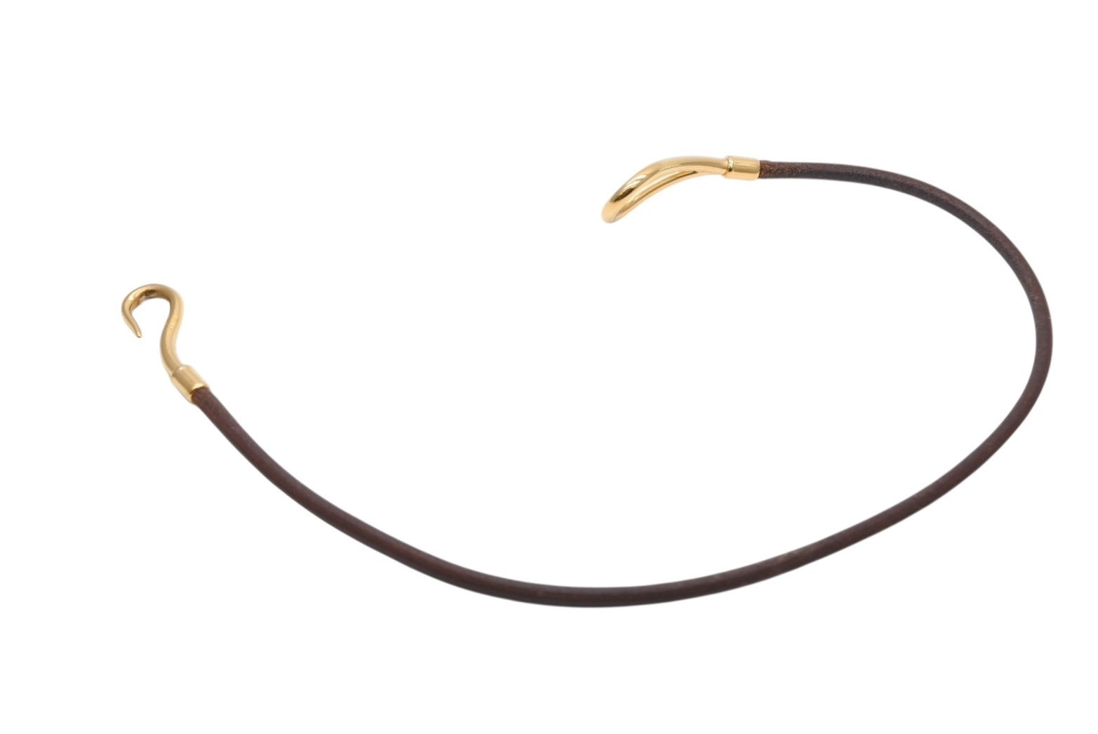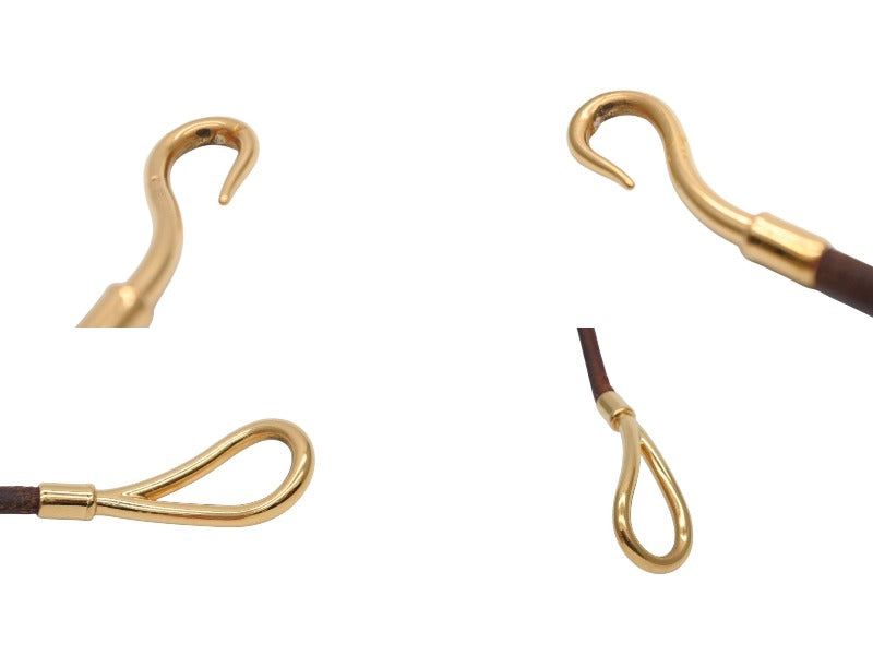 HERMES エルメス Jumbo H ジャンボチョーカー ネックレス 2連ブレスレット アクセサリー レザー ブラウン ゴールド金具 美品 中古 4b007854