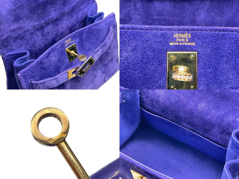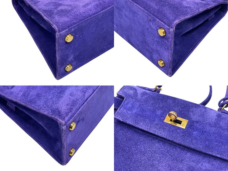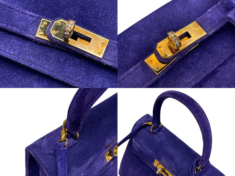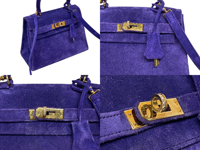 極美品 エルメス HERMES ○U刻印 ミニケリー 20 ドブリス パープル 純正ダイヤ付き 外縫い 2WAY ショルダーバッグ 中古 4b009581