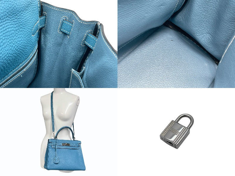 HERMES エルメス ケリー28 内縫い ブルージーン ◻︎I刻印 トリヨンクレマンス シルバー金具 ハンドバッグ 美品 中古 4b009648