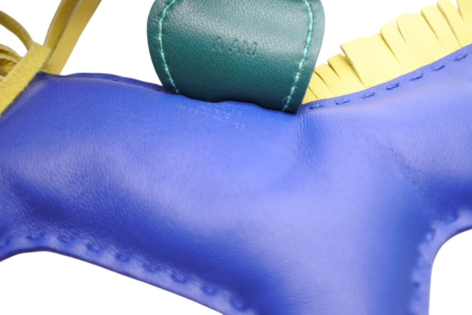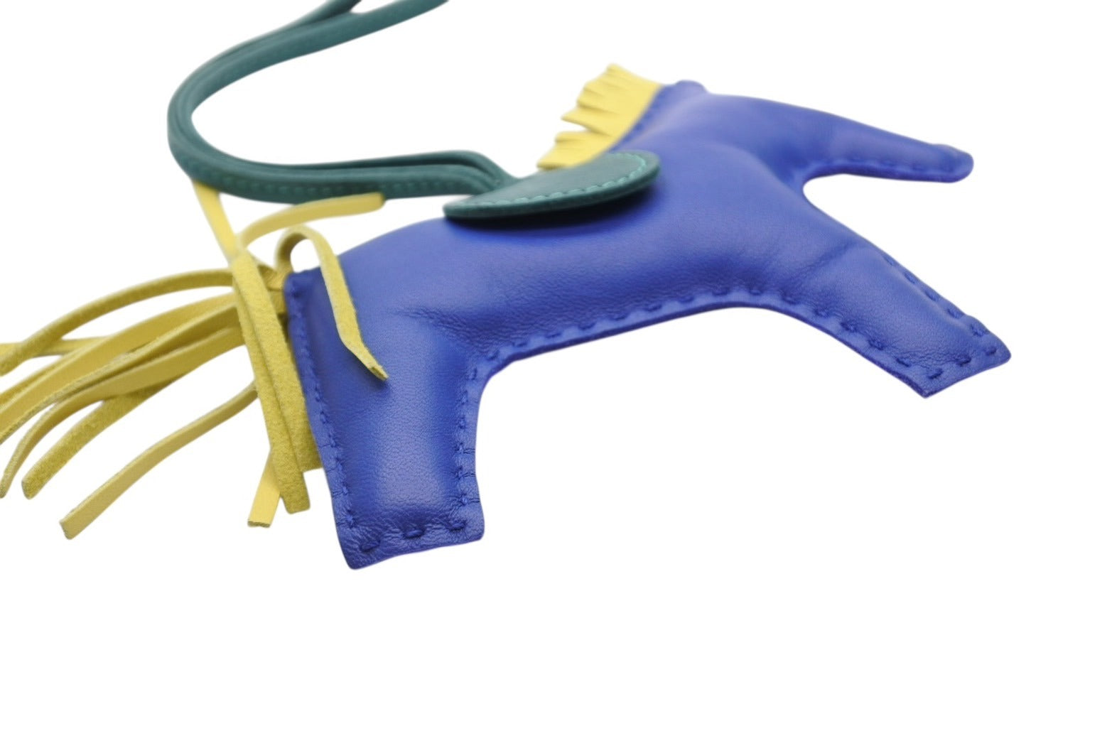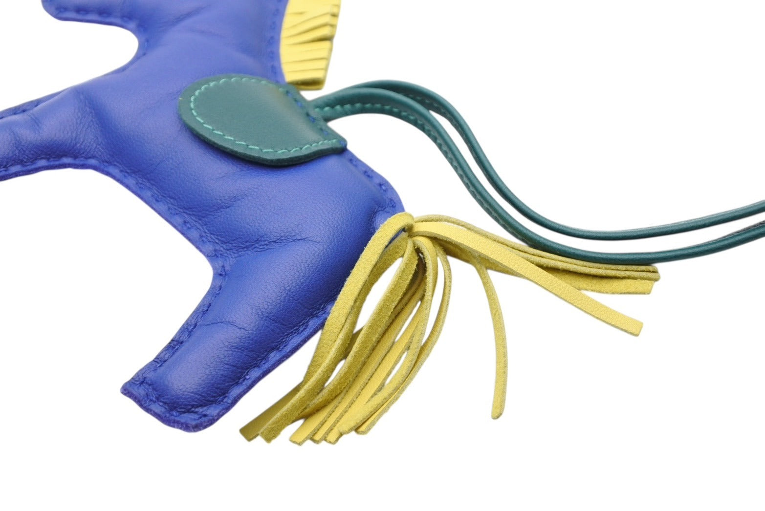 極美品 HERMES エルメス ロデオチャームMM バッグチャーム アニョーミロ ブルーエレクトリック マラカイト ライム キーホルダー 中古 4b009828