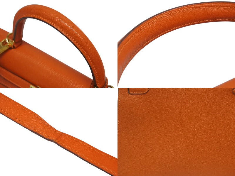 極美品 HERMES エルメス ケリー25 2WAY ショルダーバッグ 外縫 ◻︎F刻印 シェーブル オレンジ ゴールド金具 中古 4b010169