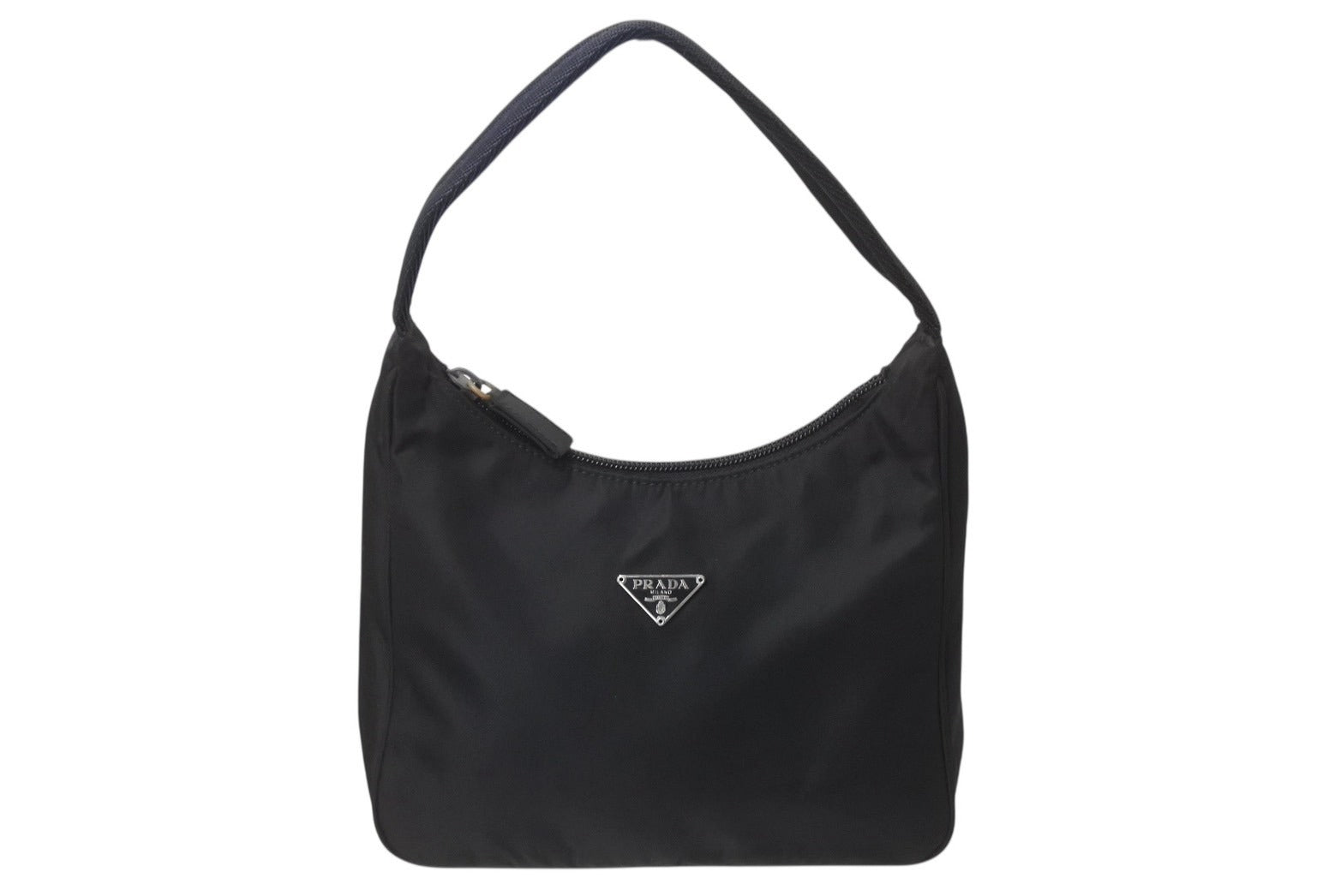 プラダのトライアングルロゴプレートがアクセントになったシンプルなデザインとなっています。