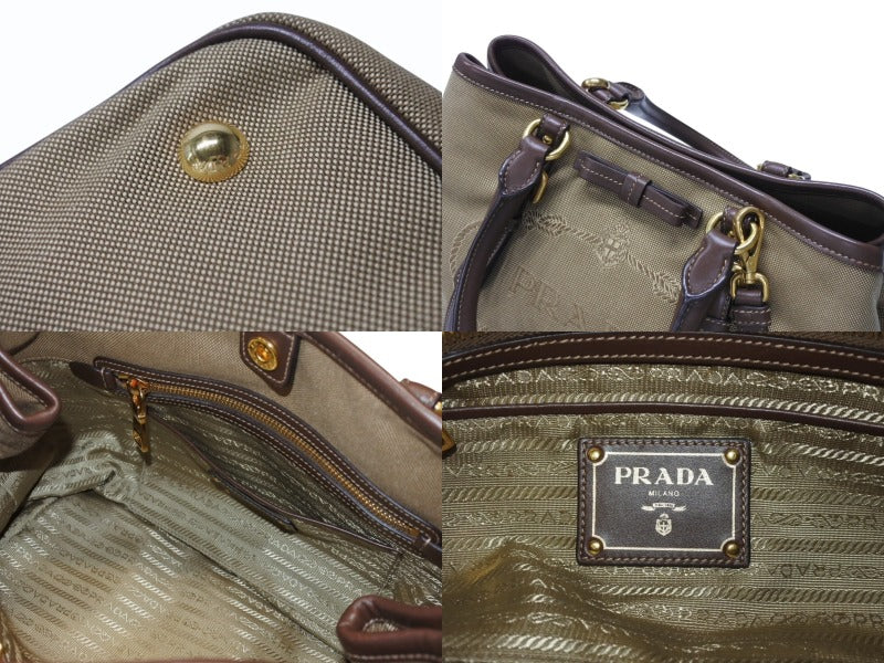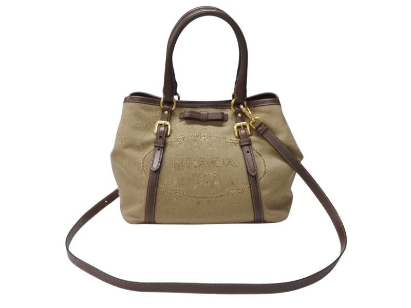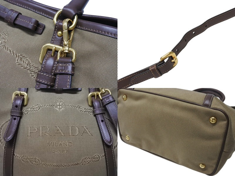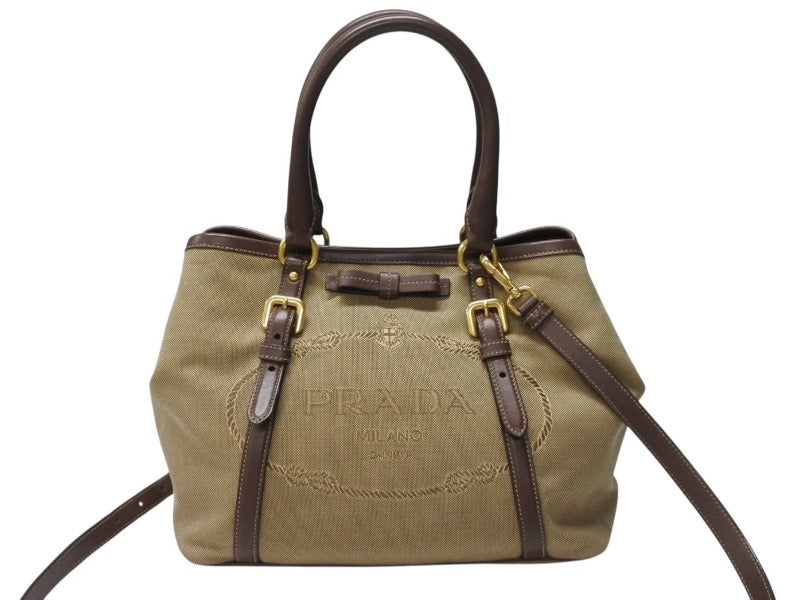 極美品 PRADA プラダ 2WAY ハンドバッグ ショルダーバッグ BN1841 ジャガード レザー ベージュ ブラウン ゴールド金具 中古 4b004562