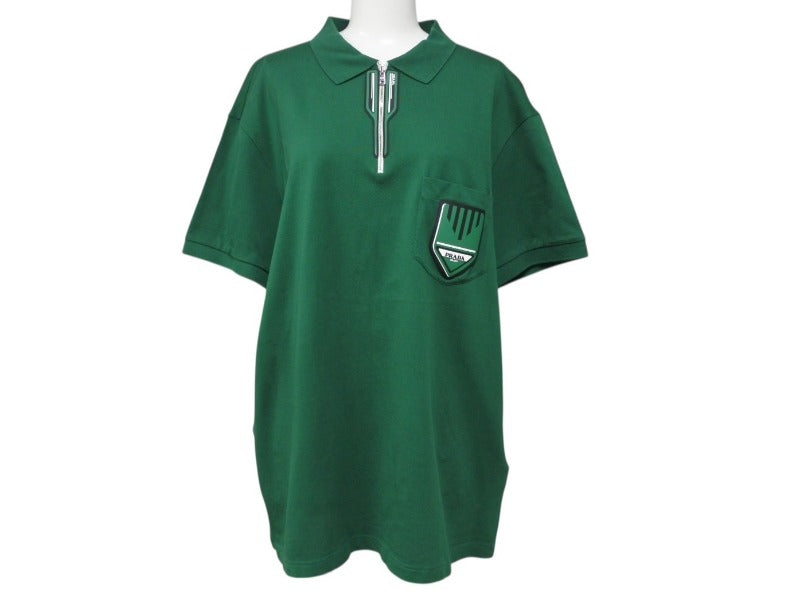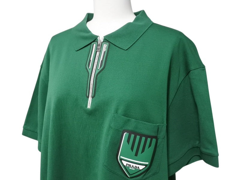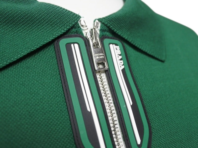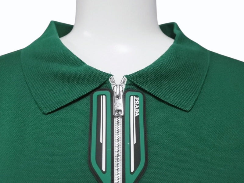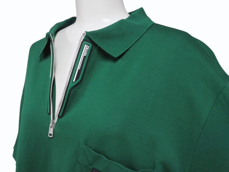 極美品 PRADA プラダ ジップアップ ポロシャツ 半袖 98339 トップス コットン グリーン サイズXL 中古 4b004932
