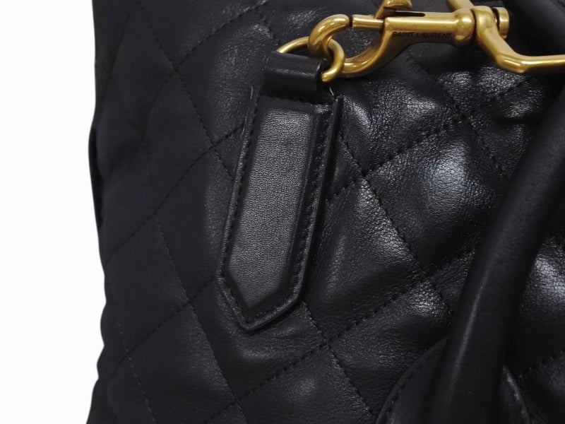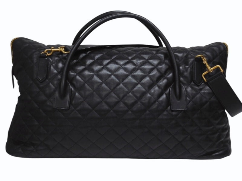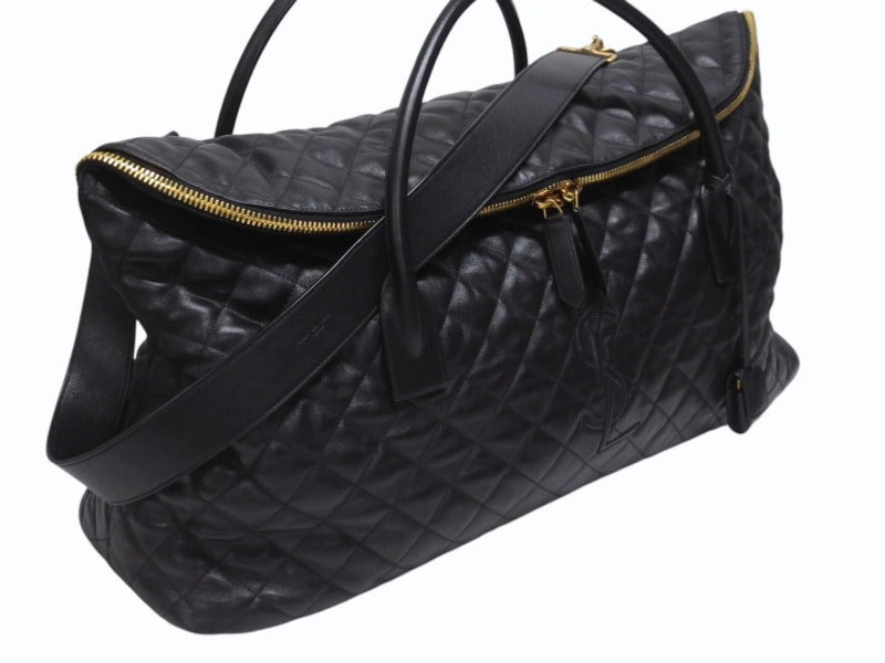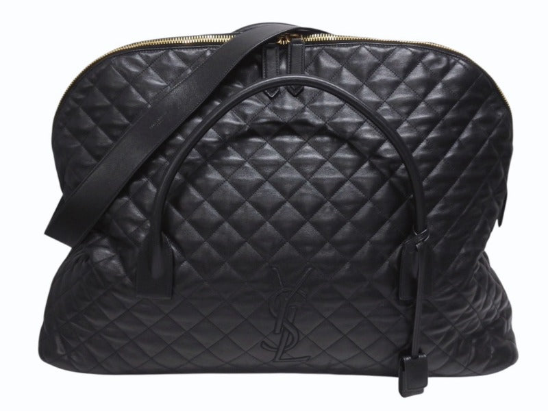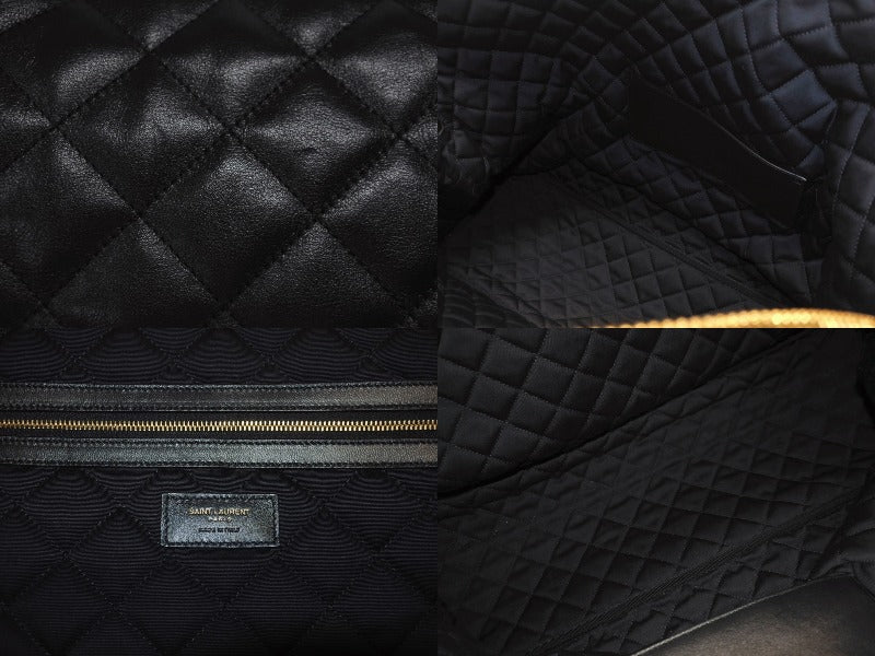 新品同様 SAINT LAURENT サンローラン YSLロゴ ジャイアントトラベルバッグ キルティング レザー ブラック ゴールド金具 中古 4b005111