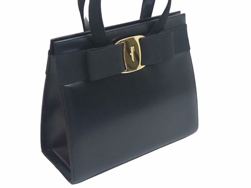 Salvatore Ferragamo フェラガモ ヴァラリボン ハンドバッグ ブラック イタリア製 BA214178 レディース 美品 中古 37930