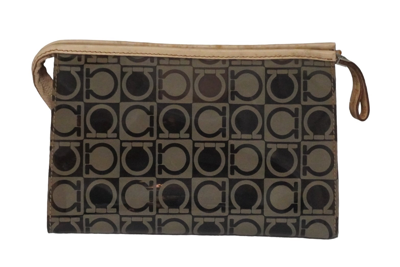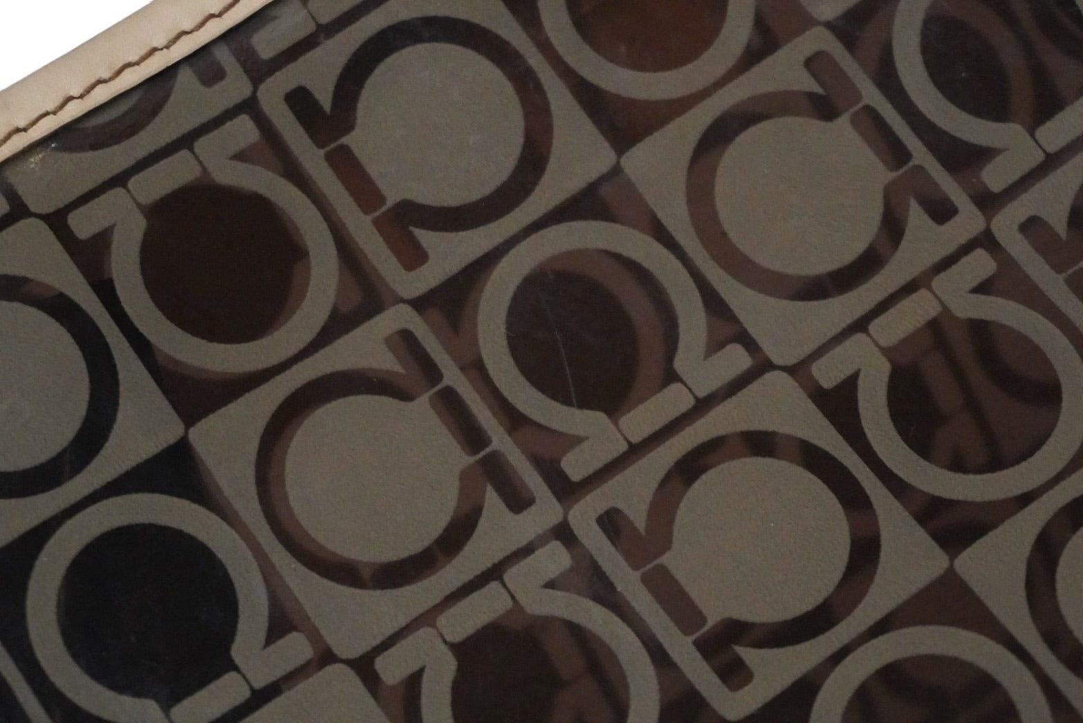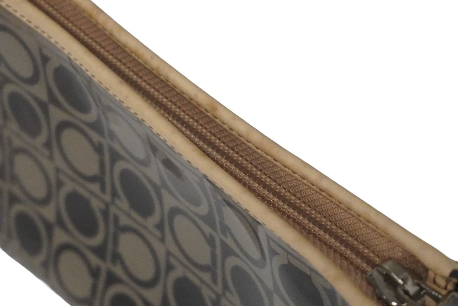 ポーチ上部レザー部分全体的に汚れあり。両面ビニール全体的にスレあり。ファスナー使用感あり。