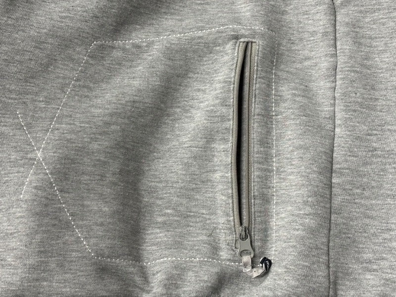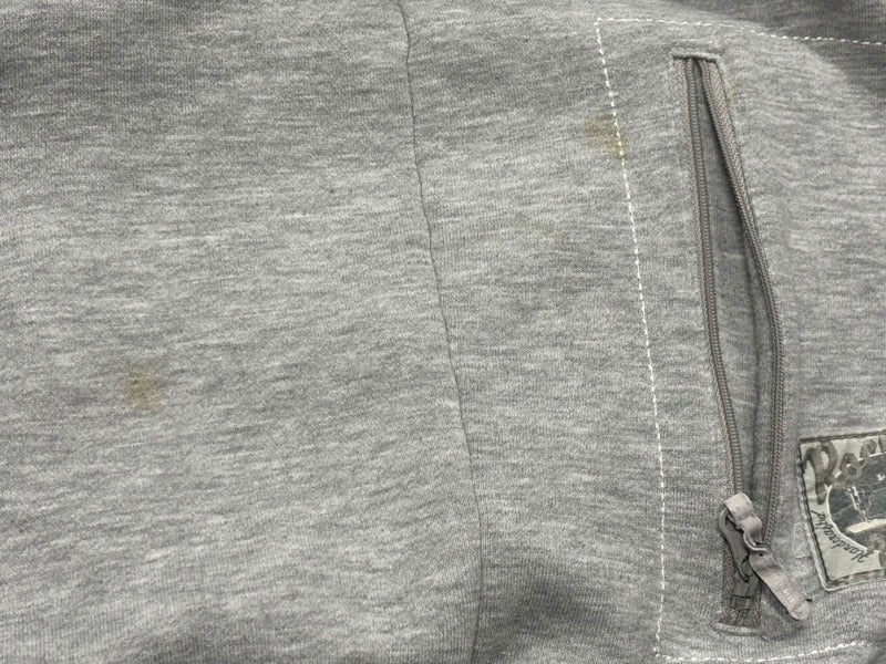 首元に毛玉あり。ジップ金具部のスレ、また正面の左ポケット部分、背面の右下部にそれぞれ汚れがありますが、その他目立つ汚れや傷の少ない美品となっております。
