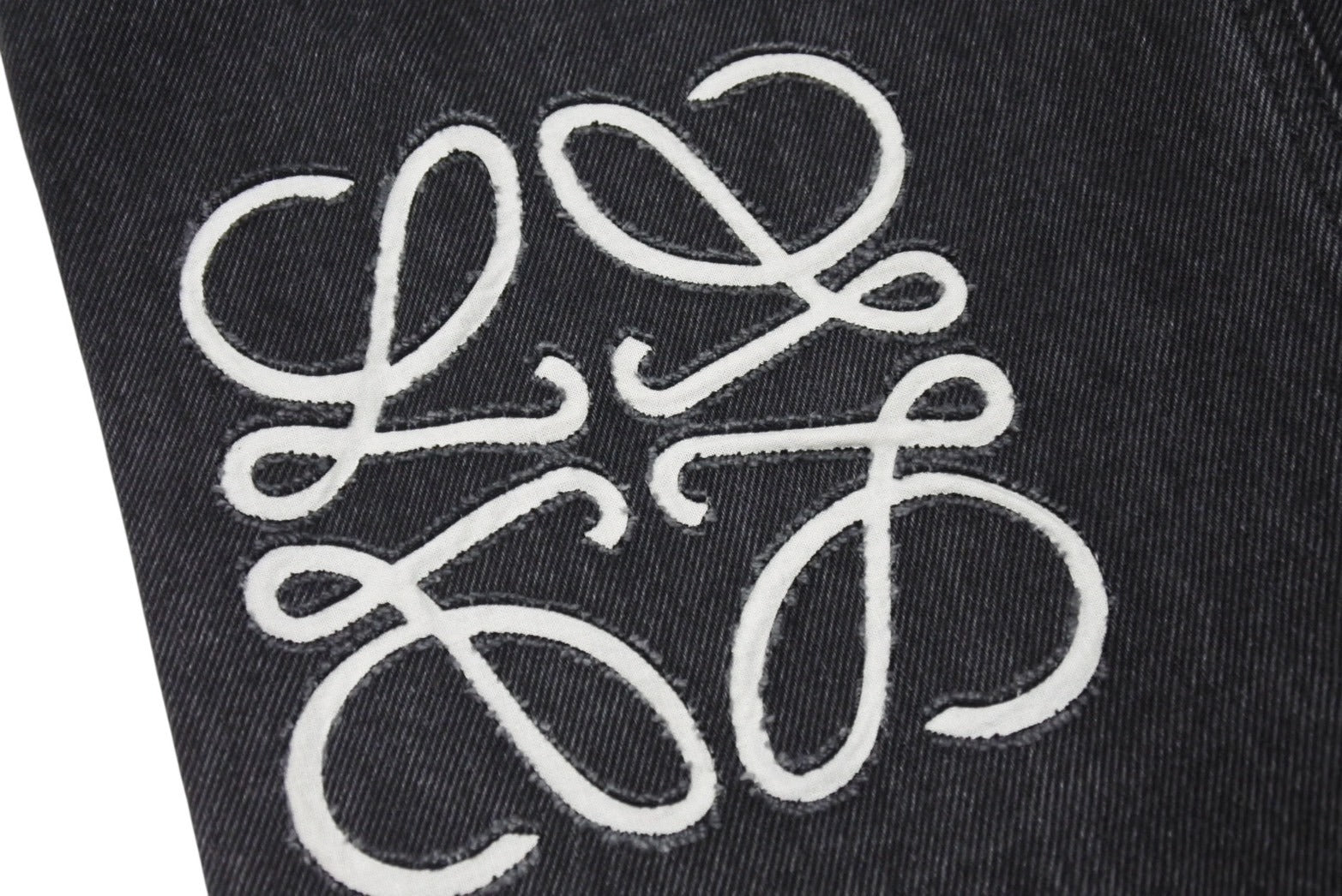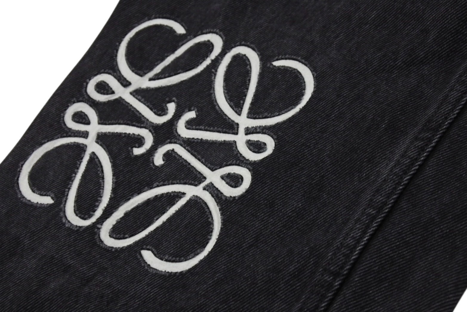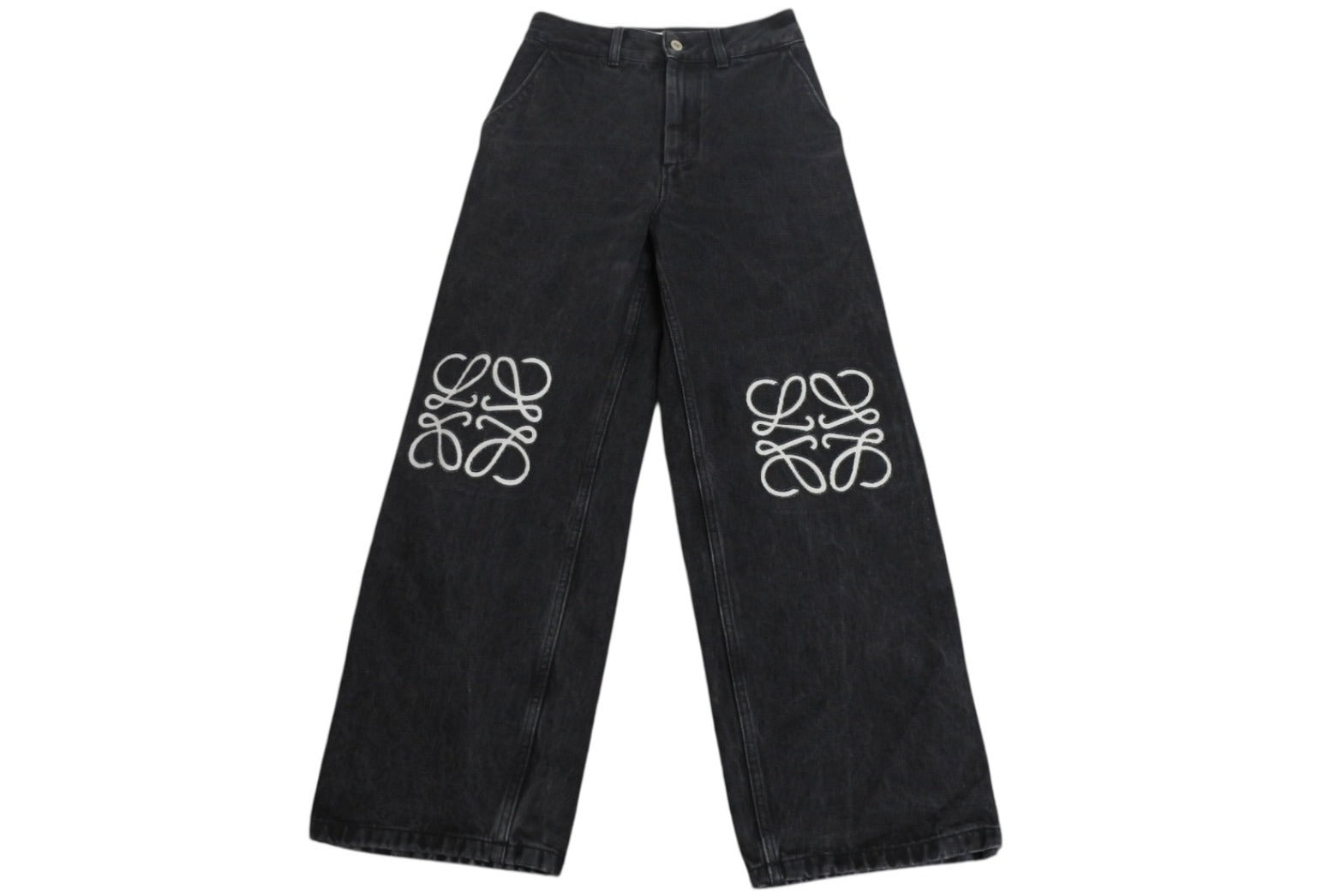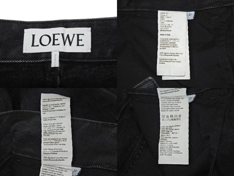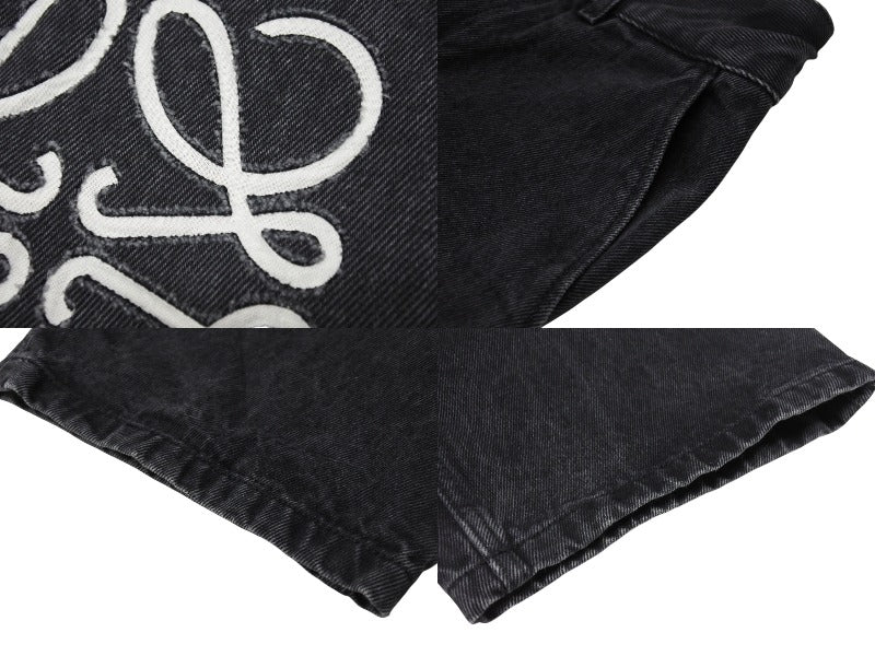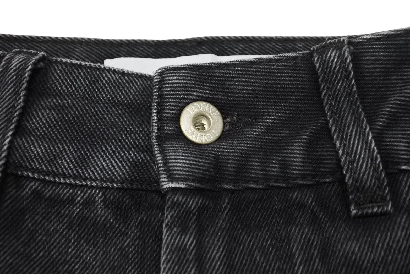 LOEWE ロエベ アナグラム バギージーンズ コットン アナグラム カットアウト フェード サイズ32 ブラック 美品 中古 4b001958