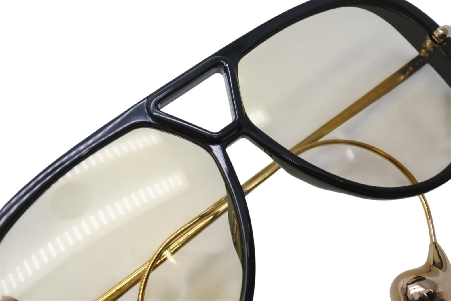 アイコニックなドロップシェイプのテンプルチップが付いた、リサイクルアセテート製パイロット サングラスです。