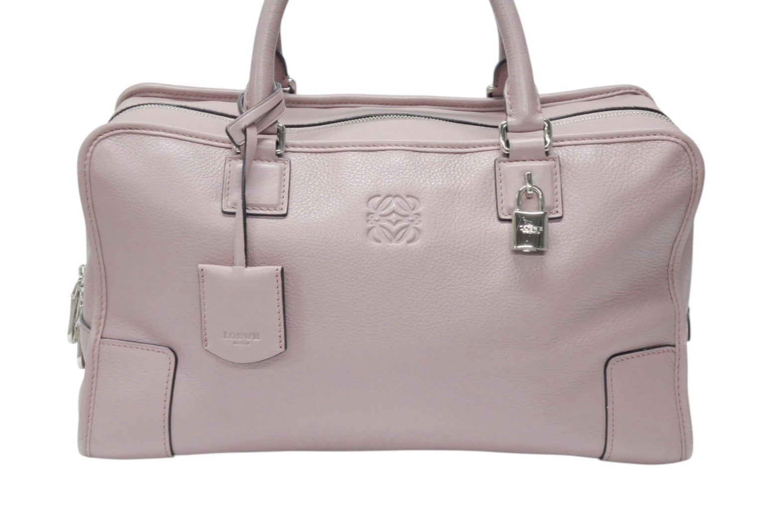 LOEWE ロエベ AMAZONA 36 アマソナ 36 ハンドバッグ レザー ダスティピンク エンボスロゴ シルバー金具 美品 中古 4b004203
