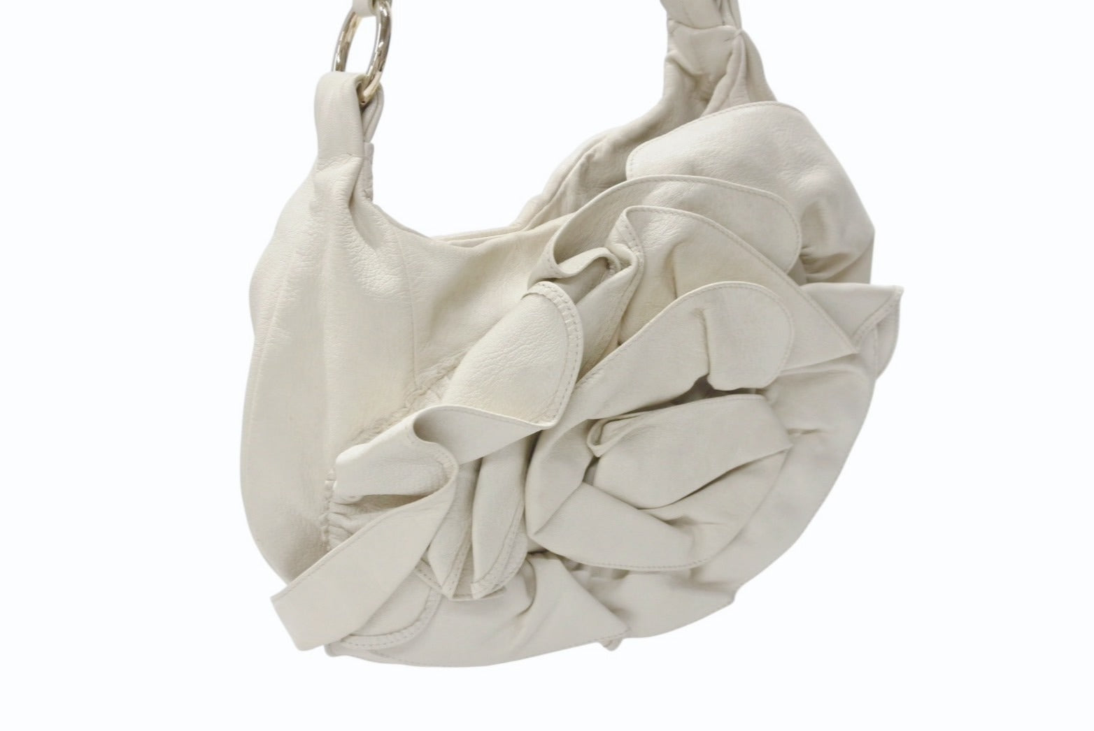 くしゅくしゅと花びらのようなデザインが特徴的な可愛らしい上品なバッグです。