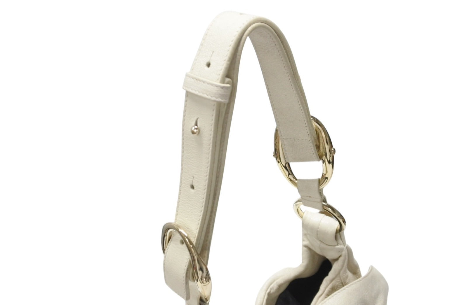 表面上部、下部、汚れあり。裏側汚れ、シミあり。ショルダー汚れあり。ショルダーつなぎ目レザー部分ほつれあり。金具傷あり。